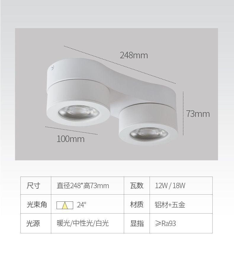 Светодиодный светильник, встроенный, регулируемый угол, без основного света