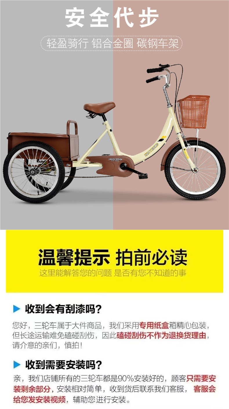 Новая модель педального трехколесного велосипеда для пожилых, транспортное и грузовое средство для взрослых, легкий малый трехколесный велосипед для пожилых