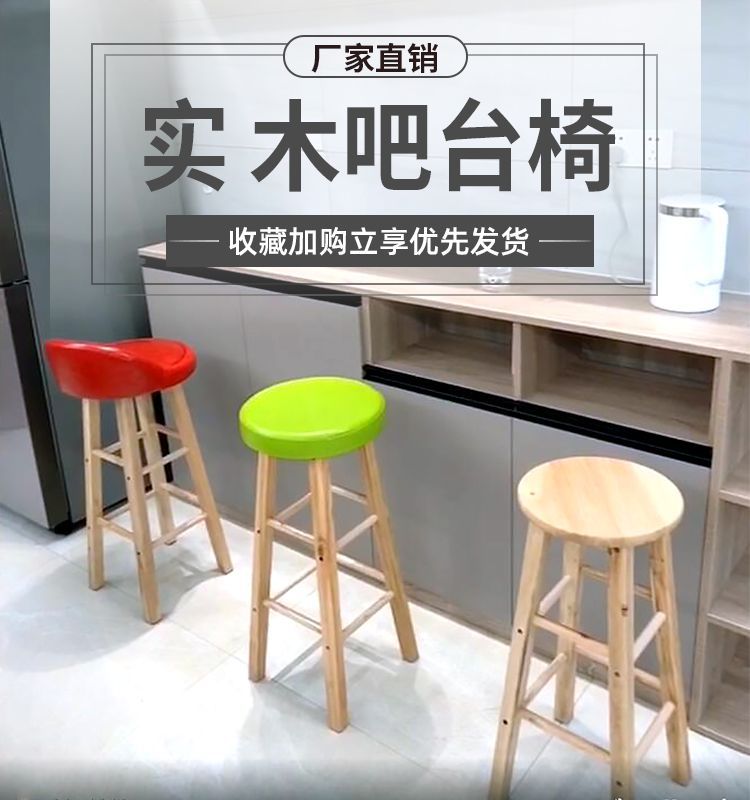 Высокий стул из массива дерева, натуральный цвет, прочный табурет для ресторана, круглый лимонный чай