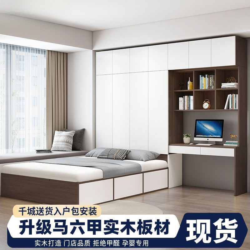 Шкаф-кровать из массива дерева, встроенная татами, домашняя комбинация, многофункциональная детская кровать с рабочим столом, шкафом
