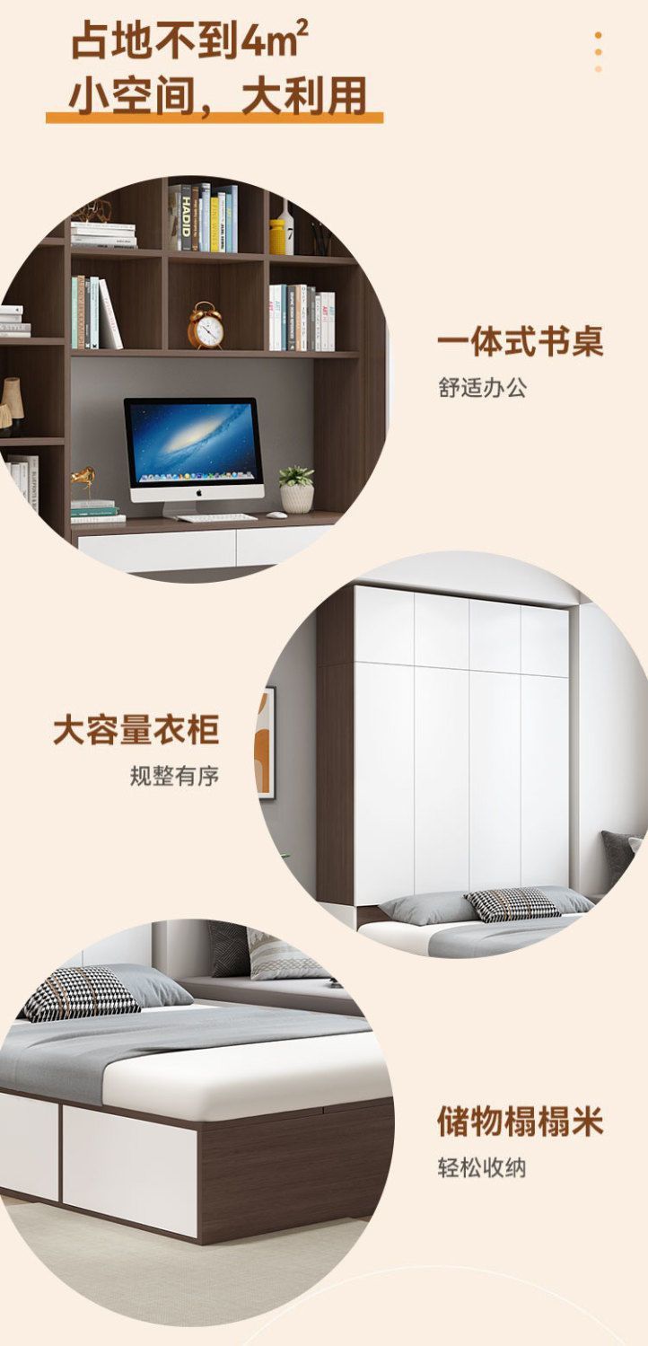 ![]() | (walnut color) bed + standing cabinet + top cabinet + desk + wardrobe | 1500mm*2000mm [installation included] | ¥3505.0 / ≈ 42 276 ₽ | 200 | 5945035240965 | |