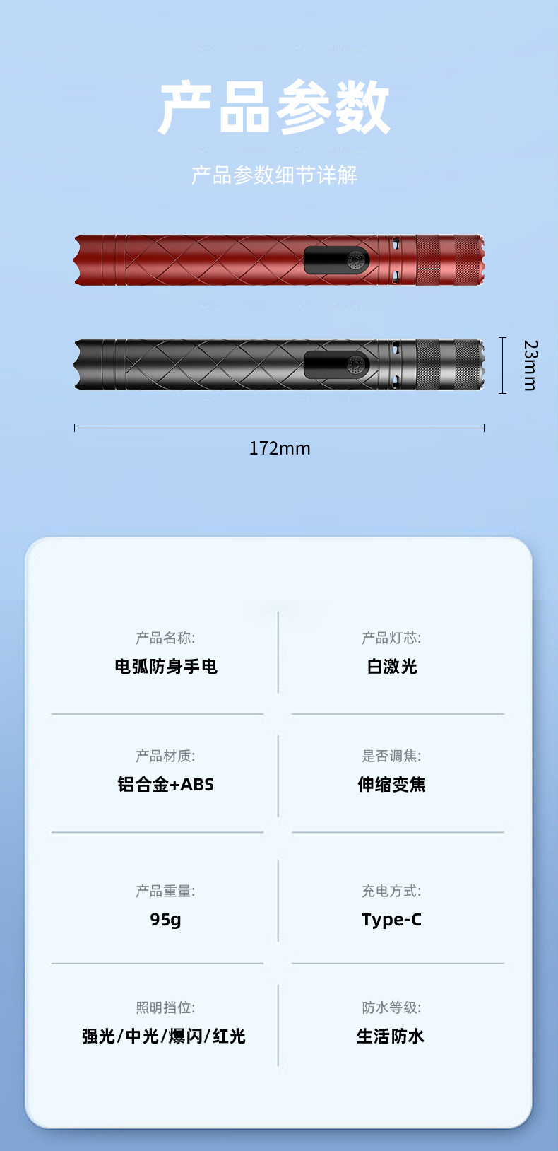 Двойной Источник Света Фонарь Арочный Самообороны Фонарь Сильный Свет Скорость Толкания Телескопический Зум Портативный Фонарь