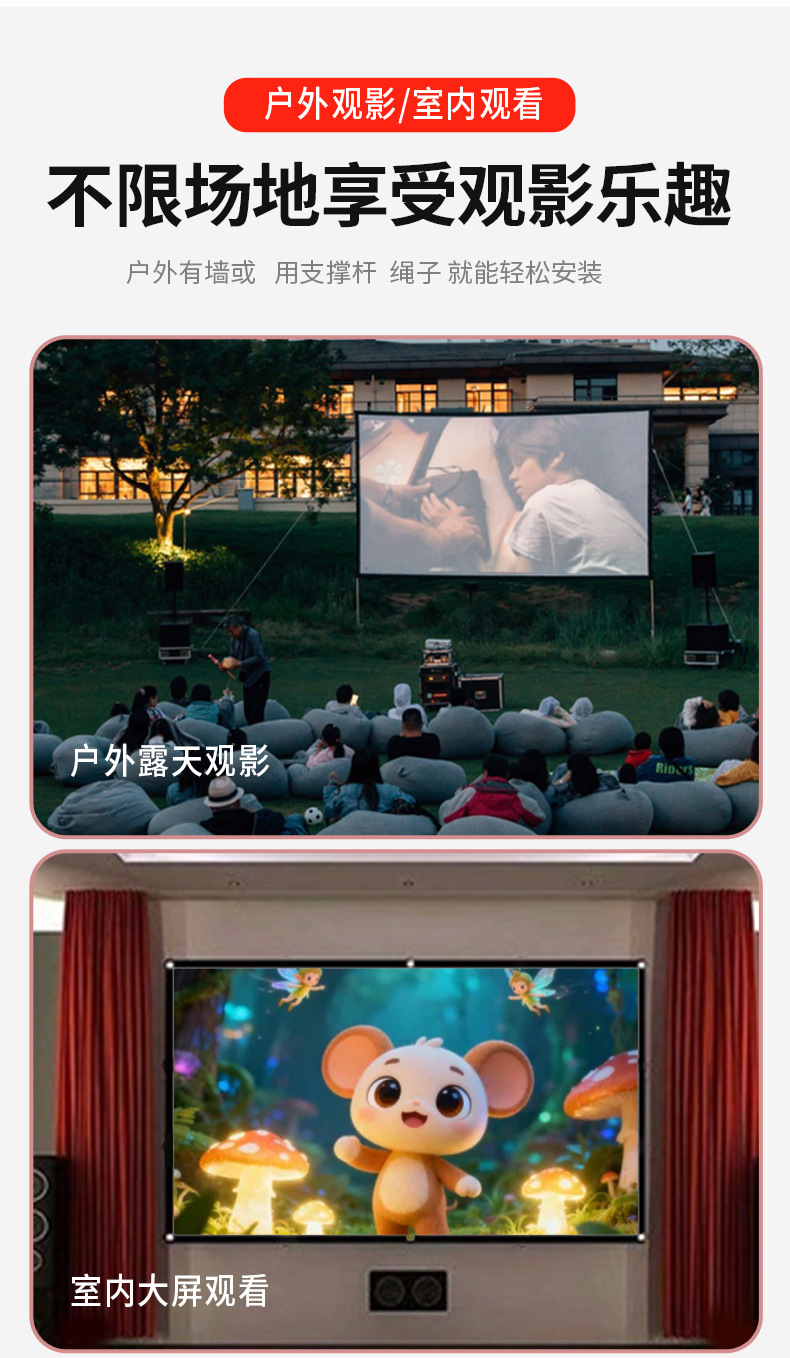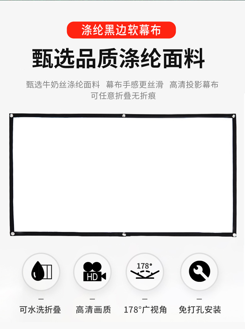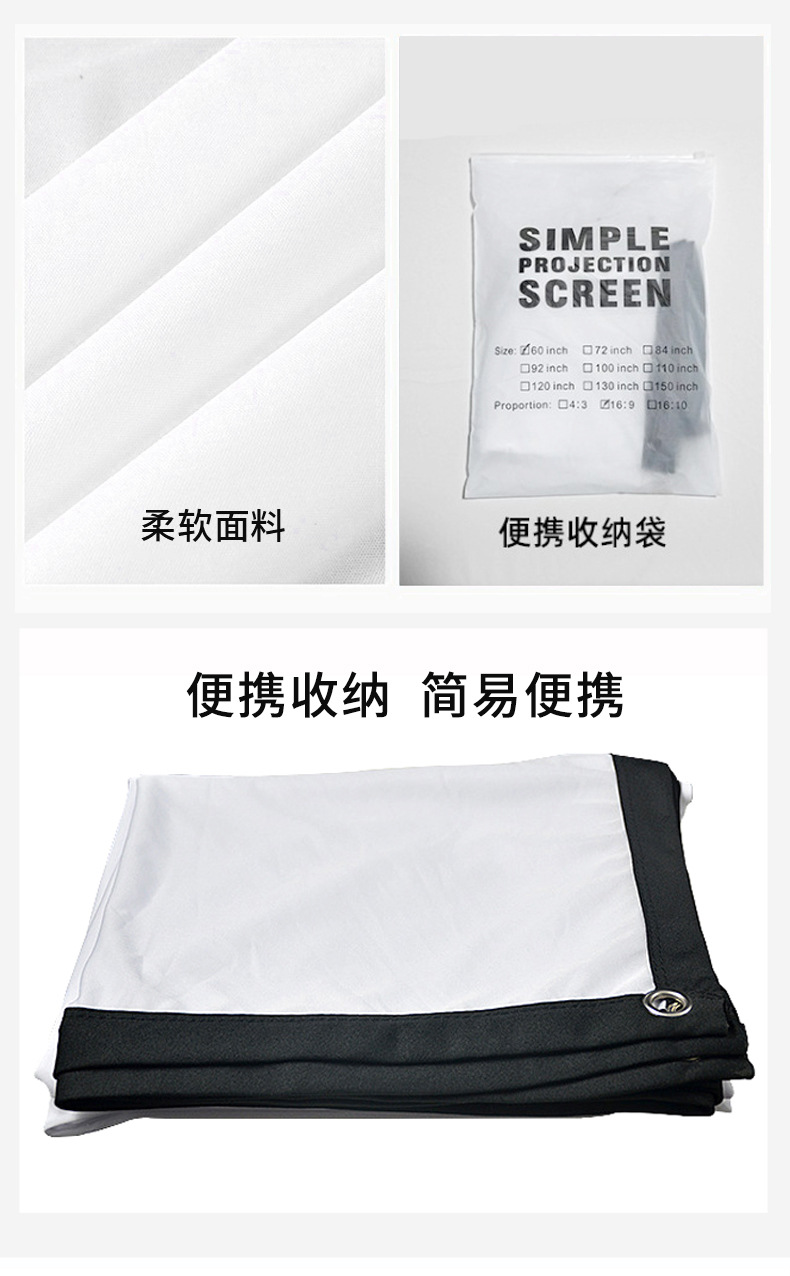 Простой и портативный складной полиэстеровый мягкий экран для проектора, домашний, 60 100 120 дюймов, уличный стиль, кино