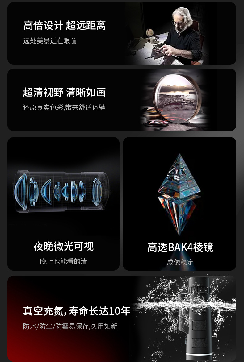 Монокулярный телескоп высокой мощности, высокой четкости, ночного видения для взрослых, артефакт для путешествий на концерты, профессиональные оптические портативные бинокли