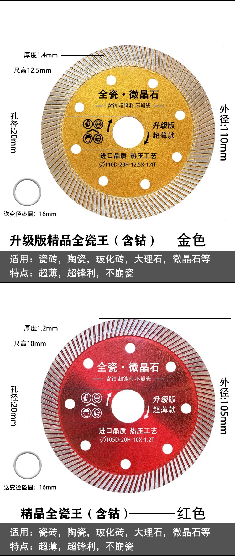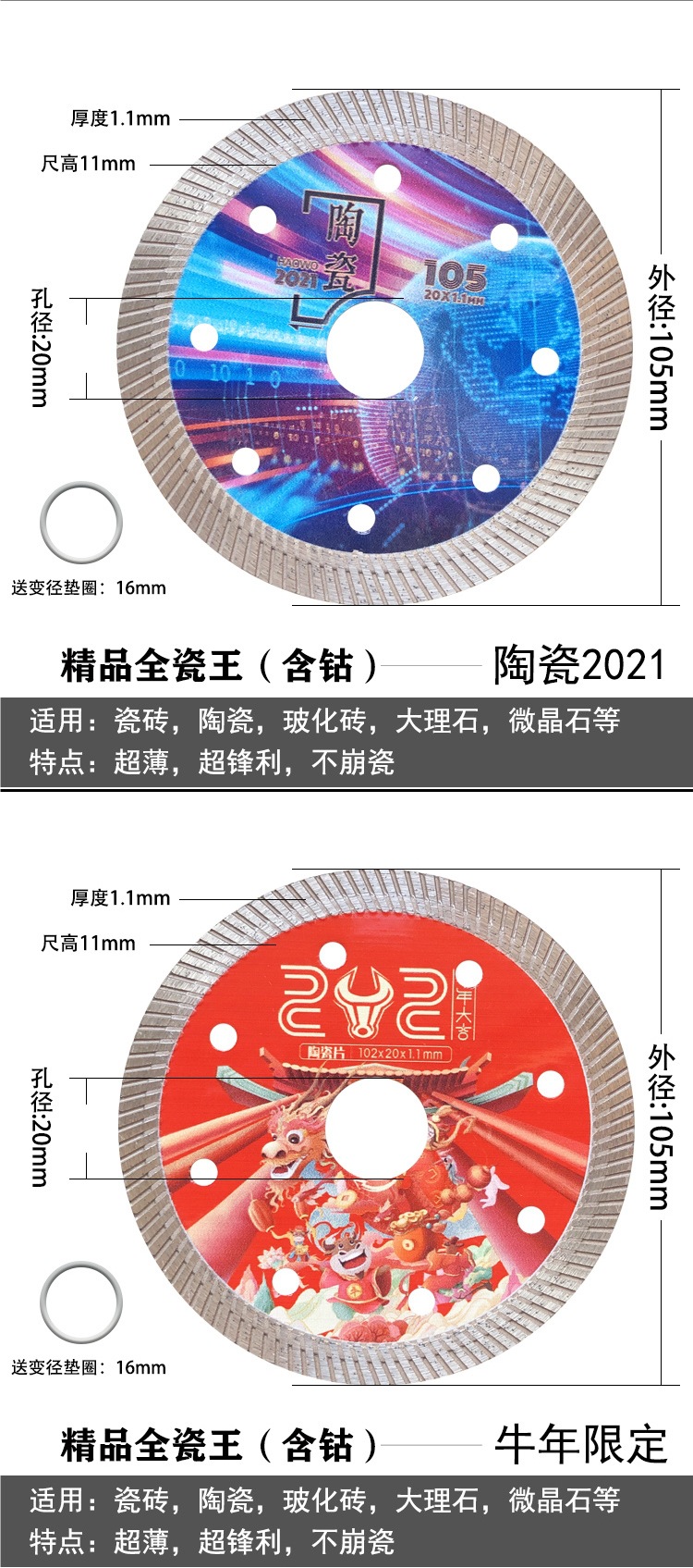 ![]() | Special for high-end ceramic tiles (containing cobalt) with a thickness of 1.1mm, buy 5 and get 2 free, buy 10 and get 5 free | ¥14.0 / ≈ 169 ₽ | 200 | 5947483733361 | |