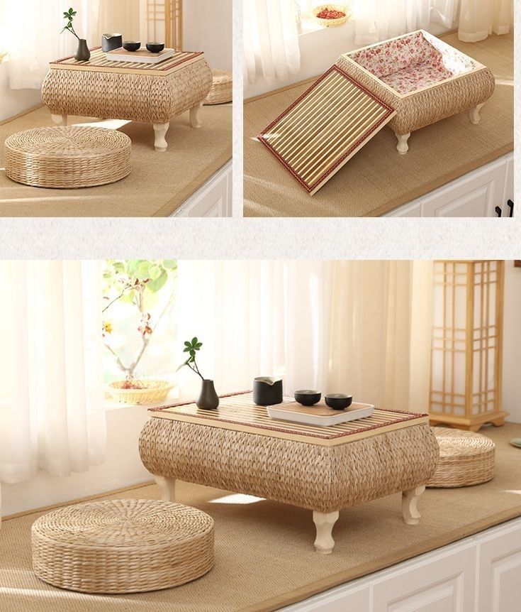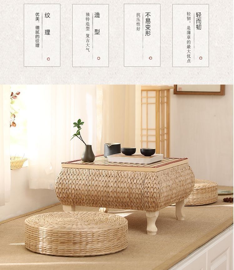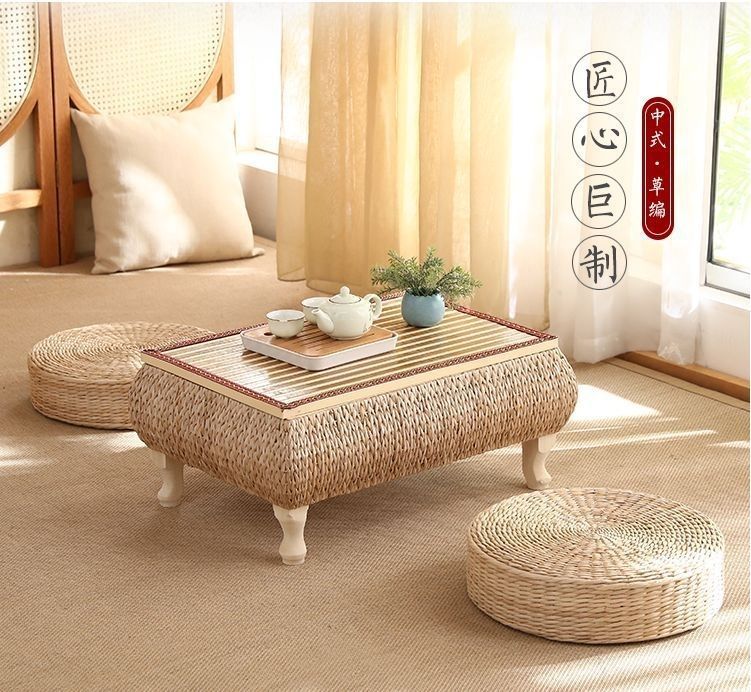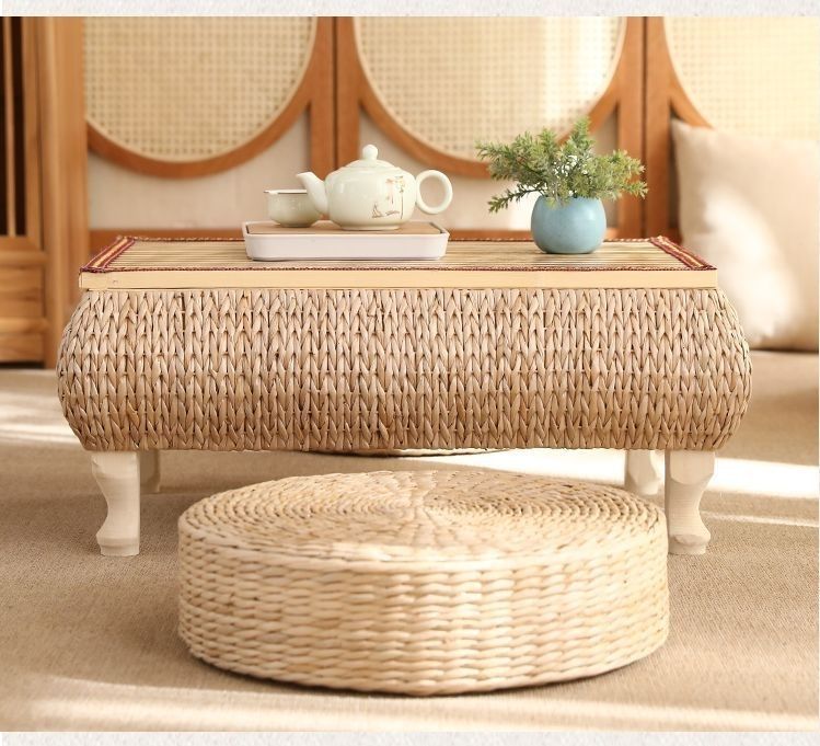 Стол из массива дерева, рattan, японский стиль, кофейный стол, низкий стол у окна