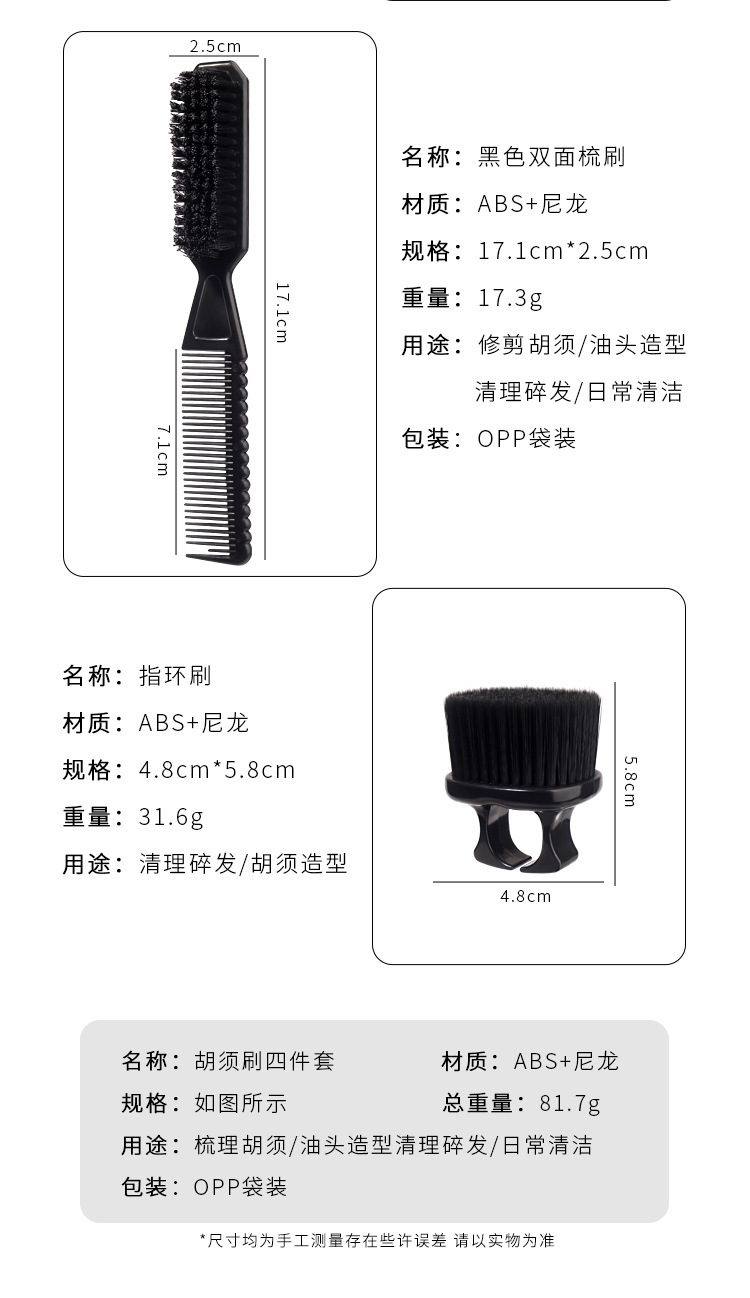 Оптовый набор расчесок и щеток для ухода за бородой, мужская щетка для волос, пенная щетка, щетка для бакенбардов, парикмахерская щетка для срезанных волос