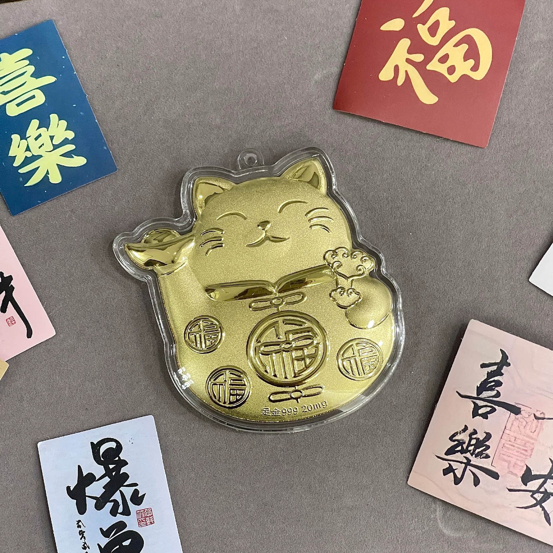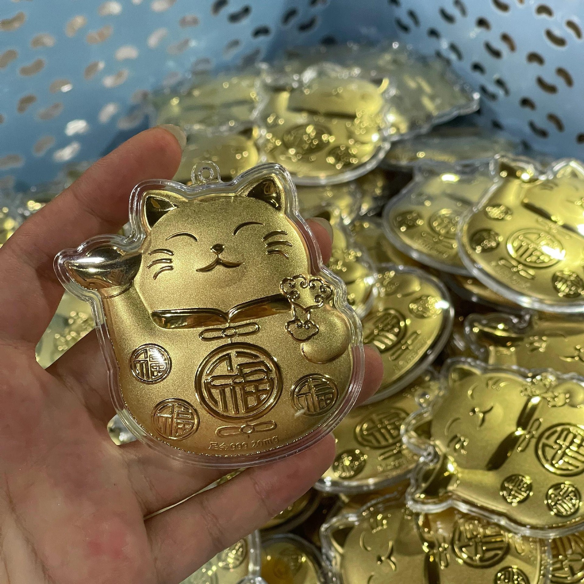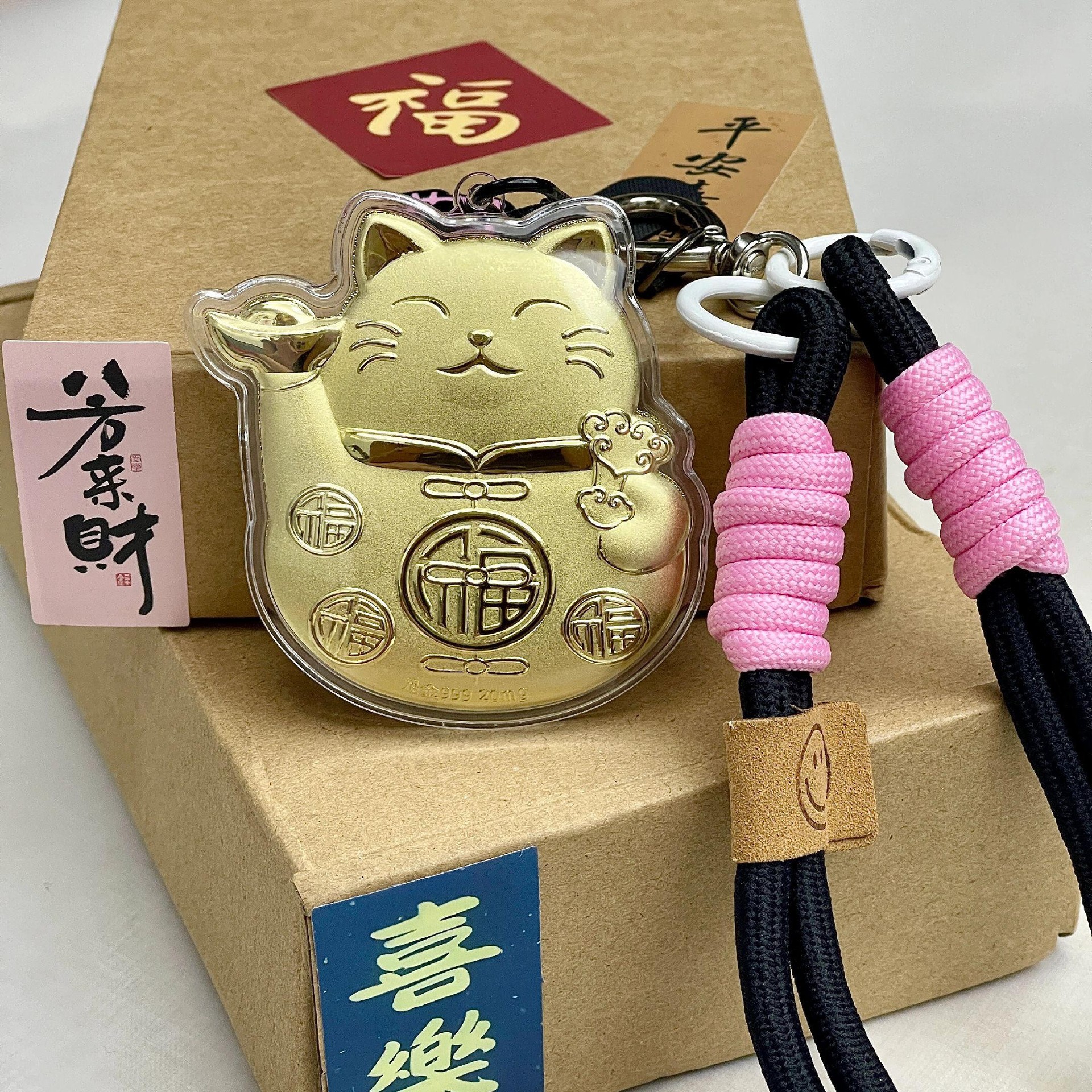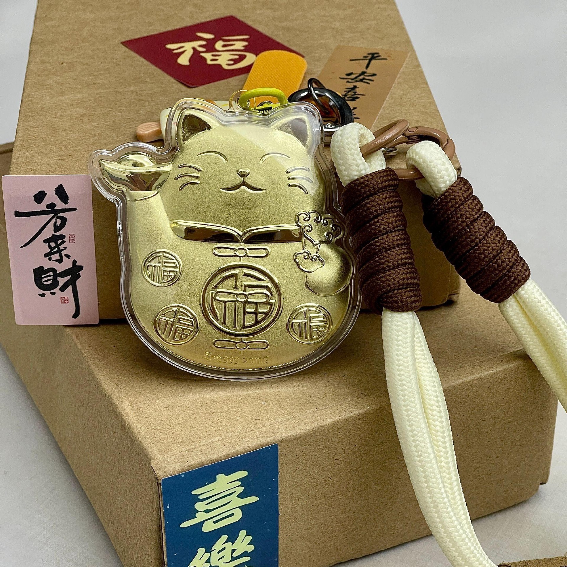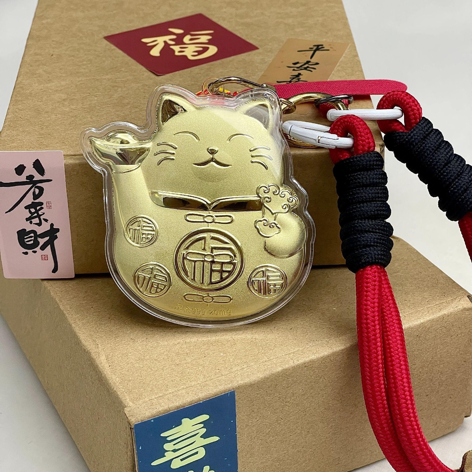 Ключница из чистого золота 999, 20 мг, кулон с котом удачи, кулон для автомобиля, сувенирные изделия, горячий стиль