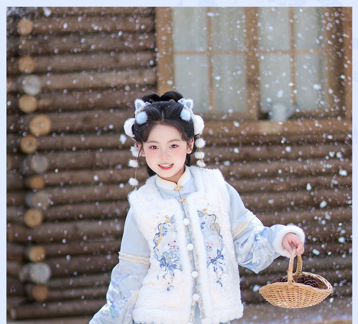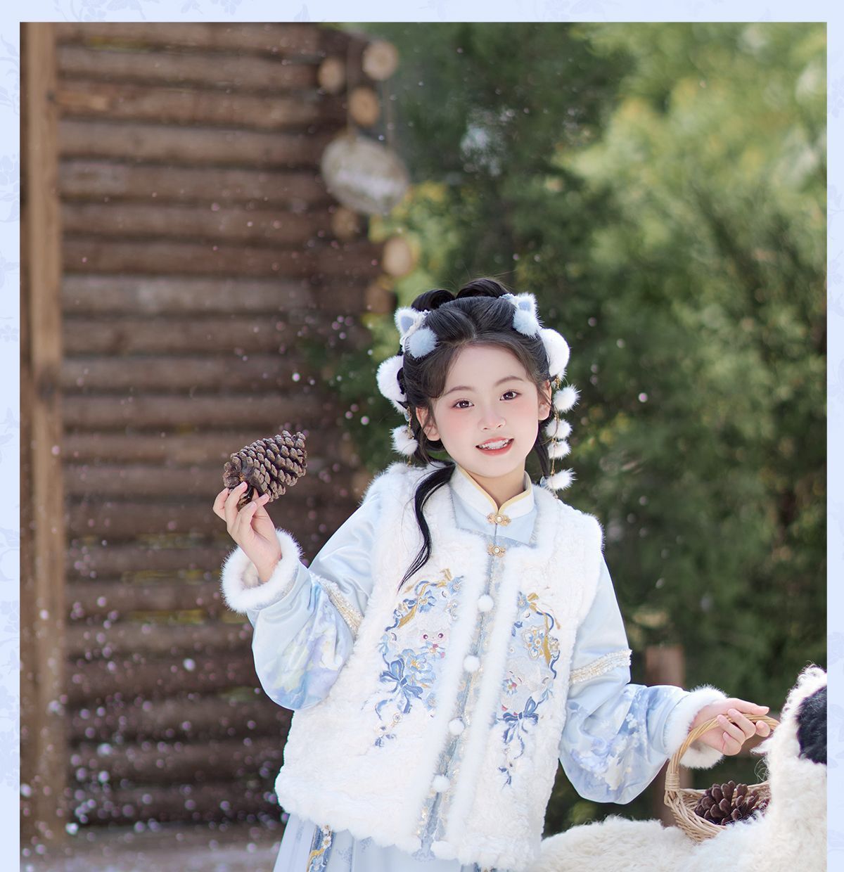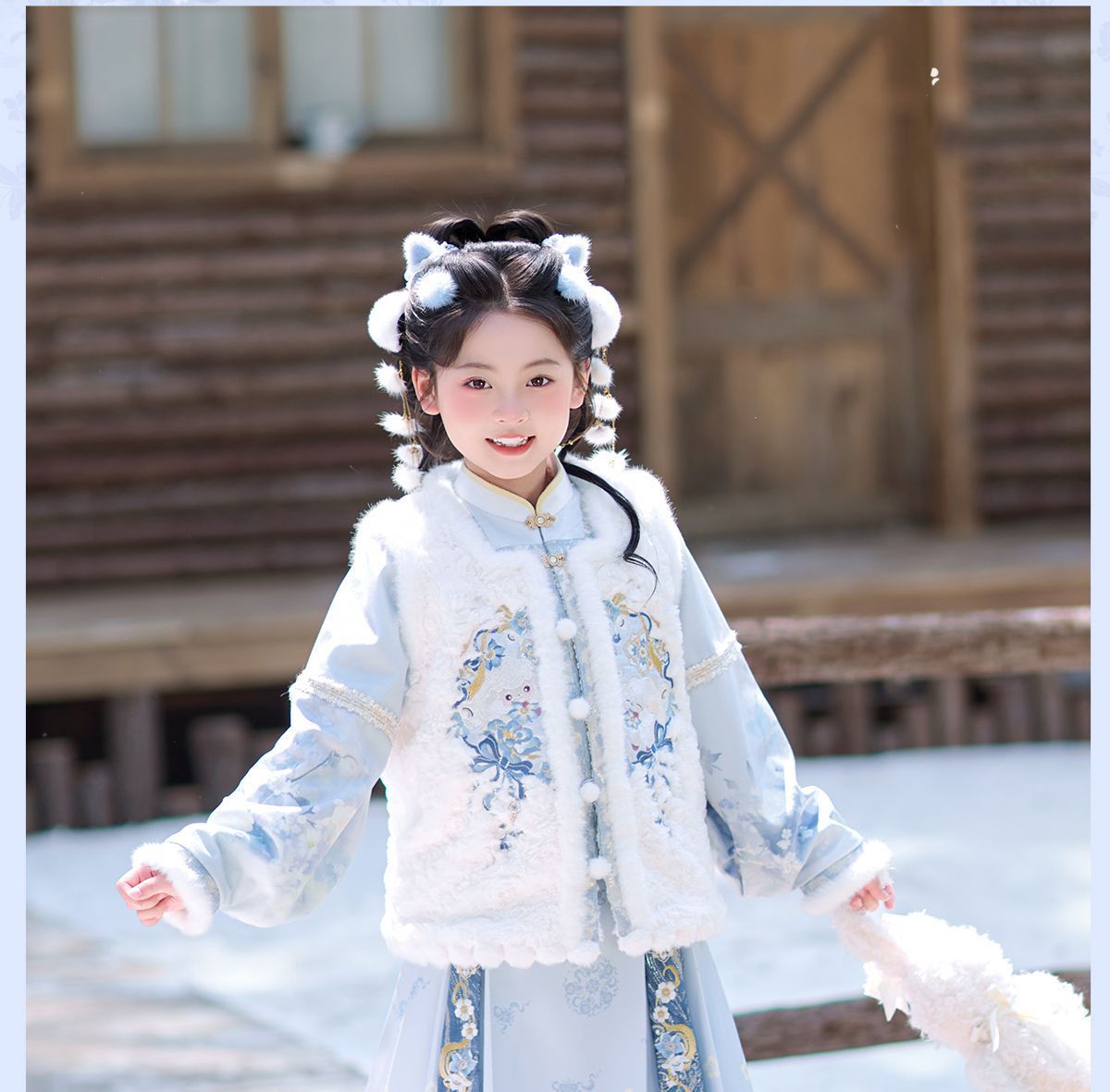 Ханфу для девочек, зимний комплект 2025 года с флисом, традиционный стиль, зимний наряд для девочек