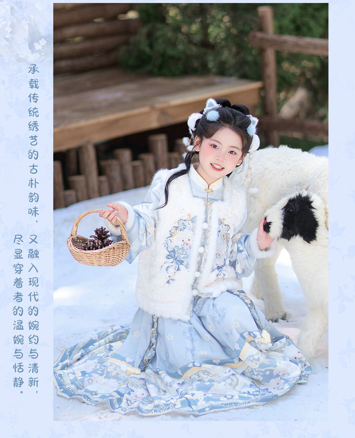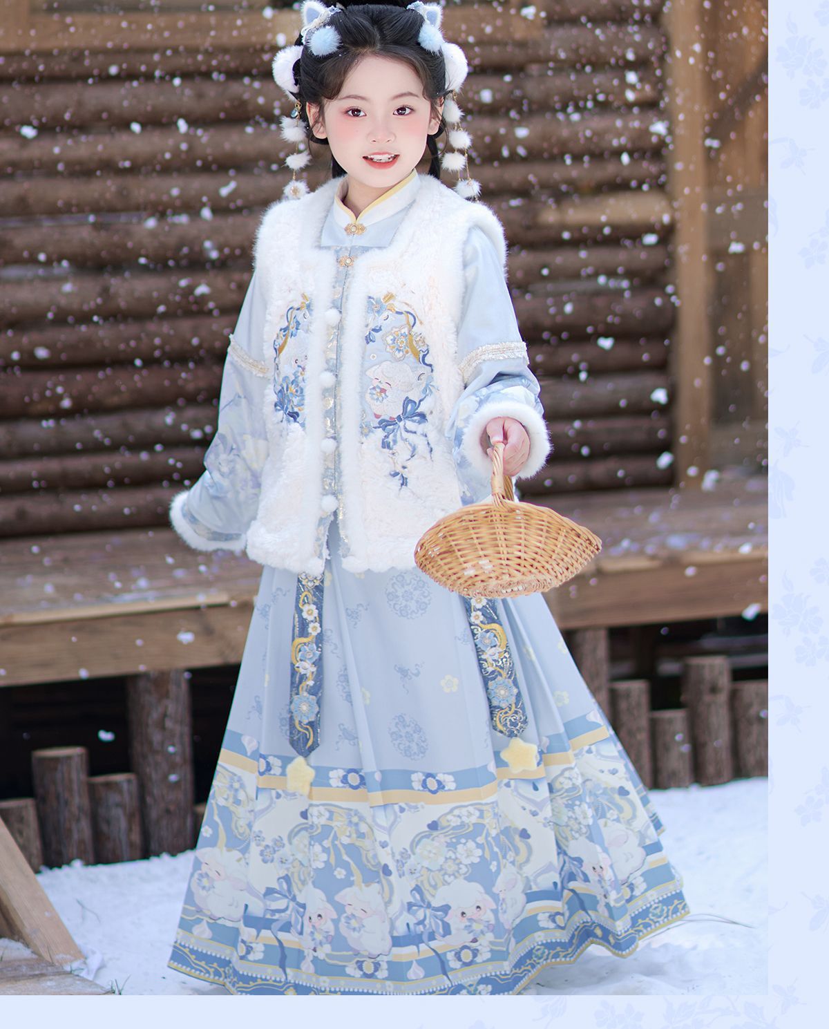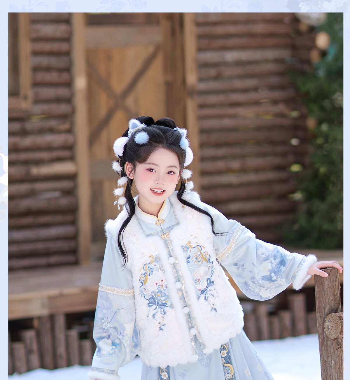 Ханфу для девочек, зимний комплект 2025 года с флисом, традиционный стиль, зимний наряд для девочек
