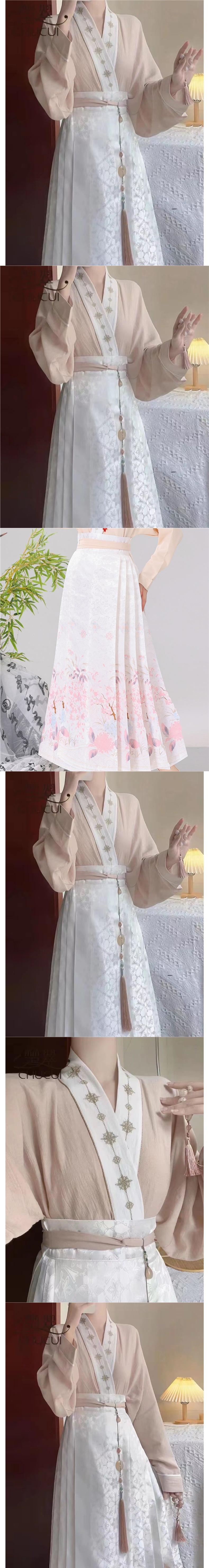 Костюм-юбка Ma-Mian, весна и осень, высококачественные вышитые рукава-кораблики, жаккардовый темный узор, костюм из династии Мин, можно носить в двух частях для повседневной носки