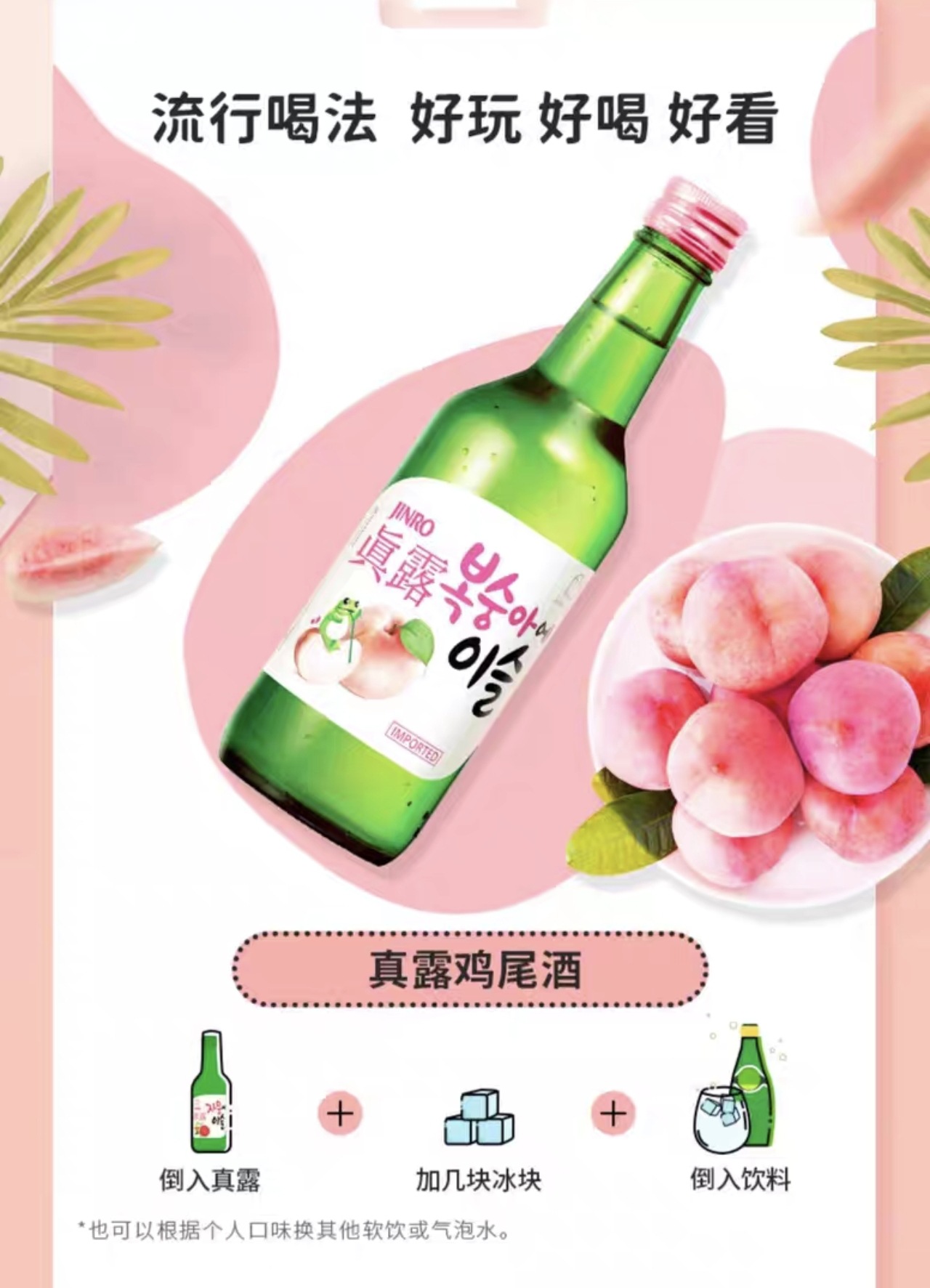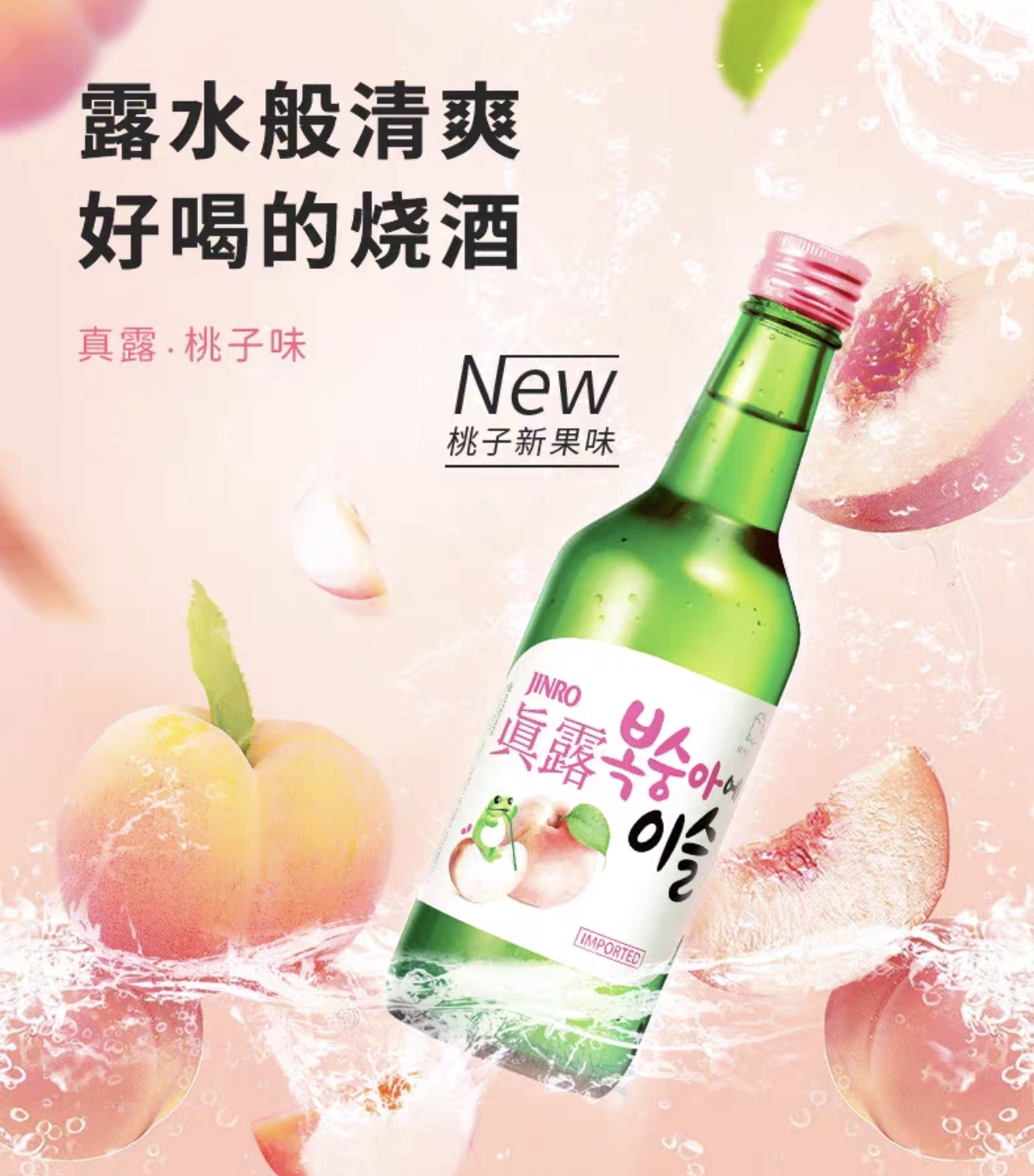 Импортный ликер Jinro со вкусом персика, фруктовый аромат, идеальное количество опьянения, освежающий запах