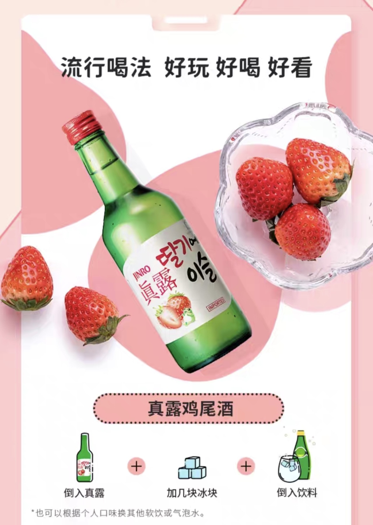 Аутентичный ликер Jinro со вкусом клубники, импортированный из Южной Кореи, фруктовый и слегка опьяняющий