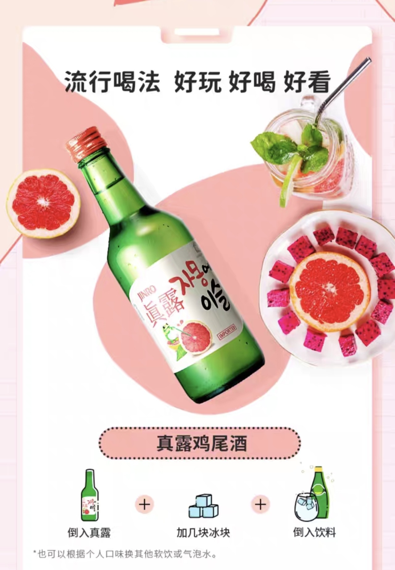 Импортный ликер Jinro со вкусом грейпфрута, низкоалкогольный, фруктовый ликер, 360ml освежающий