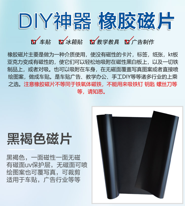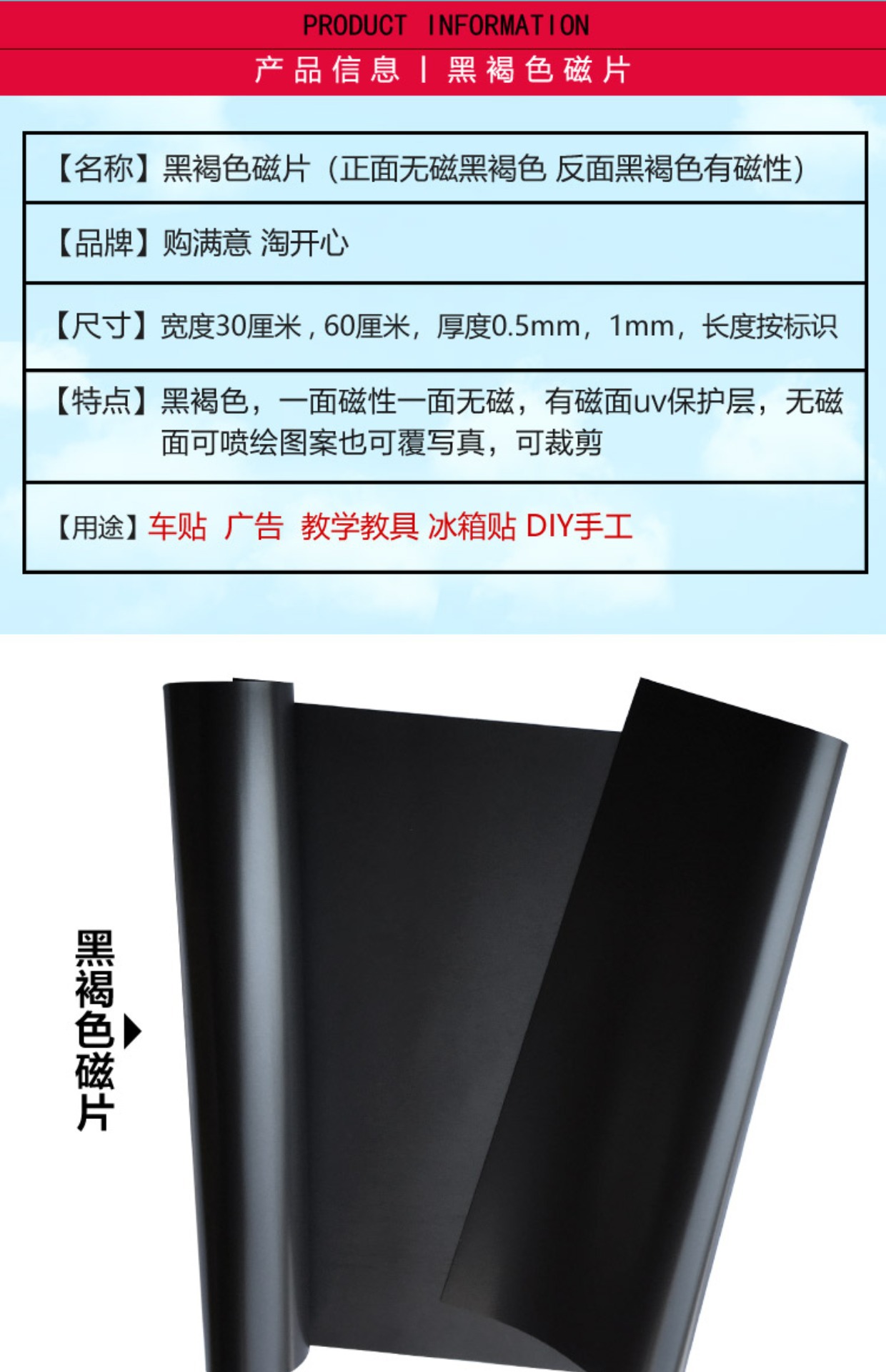 ![]() | Non-magnetic black brown on the front, magnetic on the back, single-sided magnetic without glue | 1m long - 60cm wide - half a millimeter thick | ¥22.75 / ≈ 275 ₽ | 200 | 6112539274648 | |