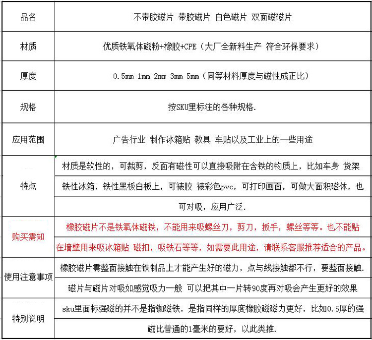 ![]() | White on the front, non-magnetic, magnetic on the back, without glue | 1m long - 30cm wide - strong magnet (half a millimeter thick) | ¥29.9 / ≈ 361 ₽ | 200 | 5946559712032 | |