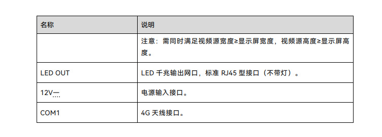 1 路 USB 2.0(Type A)接口 支持 U 盘节目播放、U 盘固件升级和 U 盘扩容。 1 路 USB(Type B)接口 将上位机与设备直连,进行节目发布和显示屏控制。 1 路百兆网口 将上位机与设备直连,或者将设备接入局域网或公网,进行节目发布和显示屏控制。