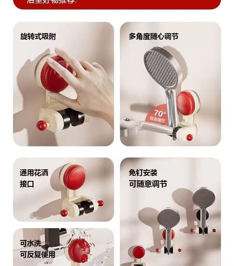Крепление для душа с сильным клеевым присоском без пробивания, регулируемое, многонаправленное, съемное, фиксированное сопло с крючком