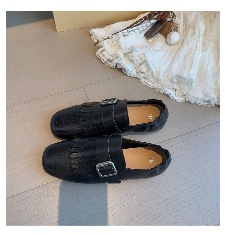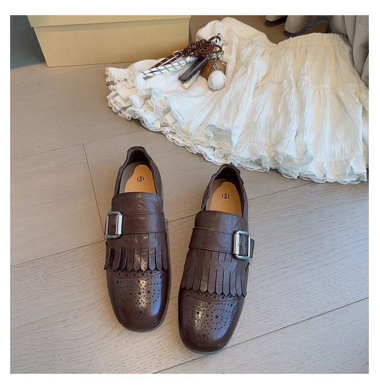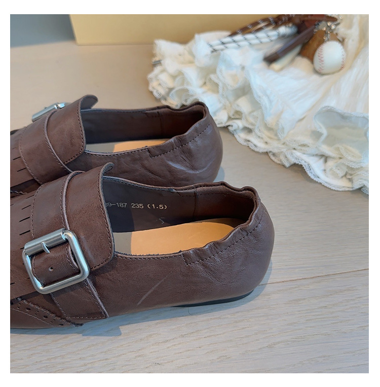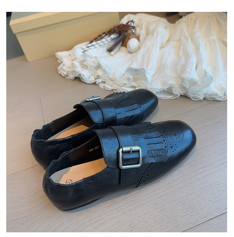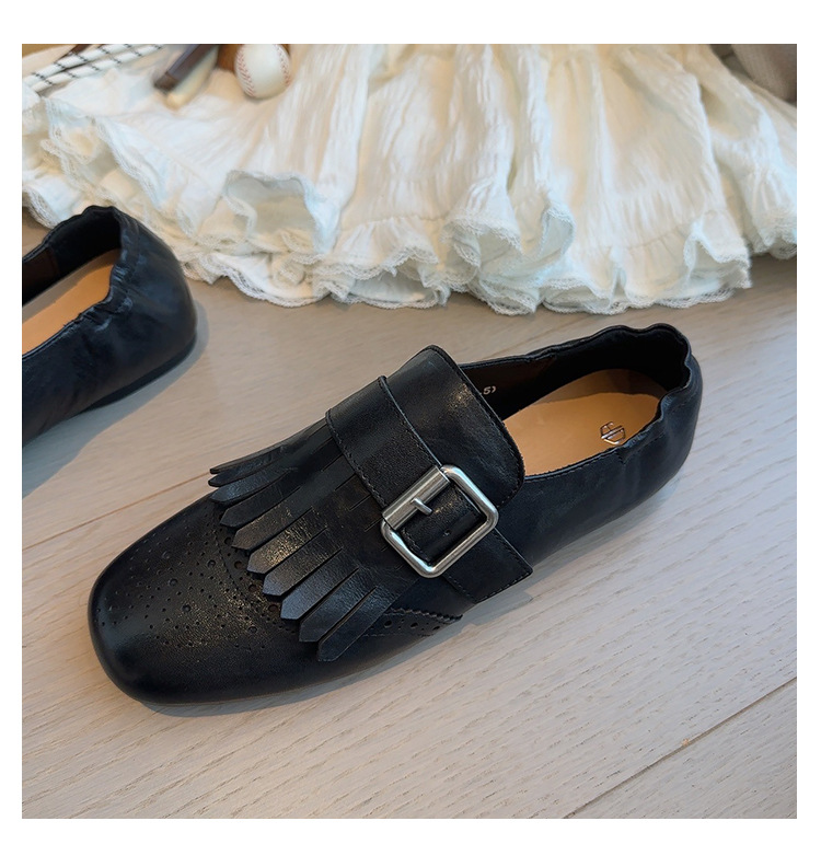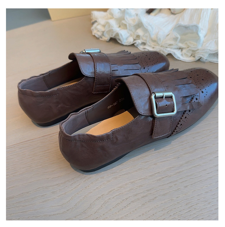 Британский стиль~Красные ретро туфли с кисточками и пряжкой для женщин, новые балетки 2025 года, брошированные лоферы