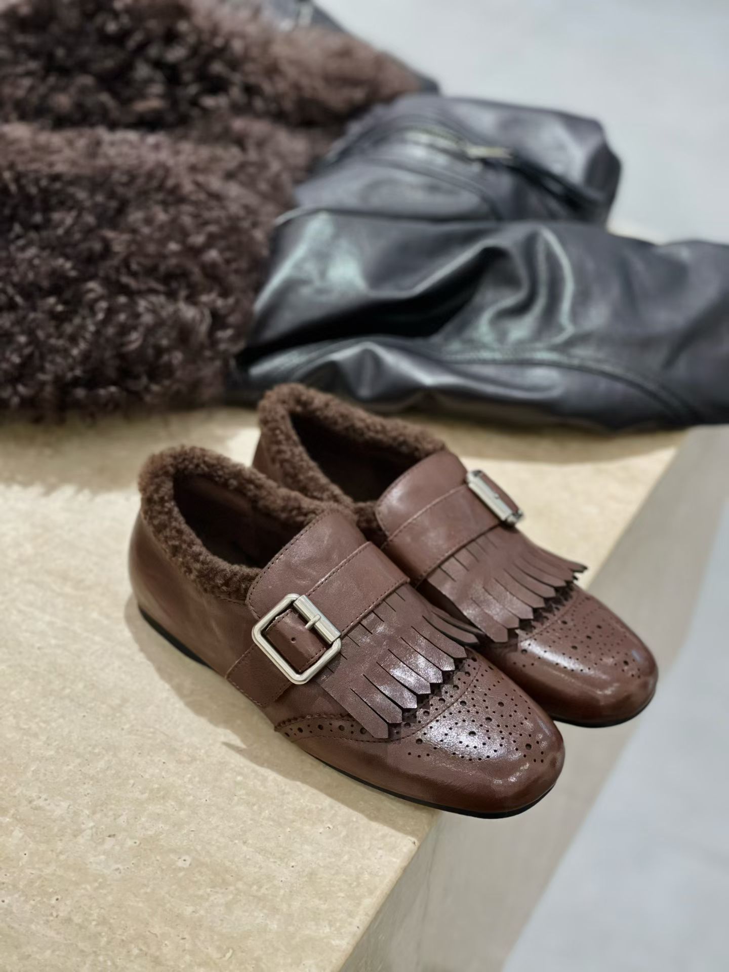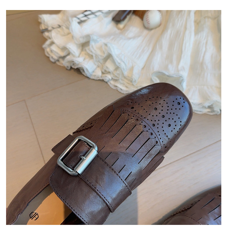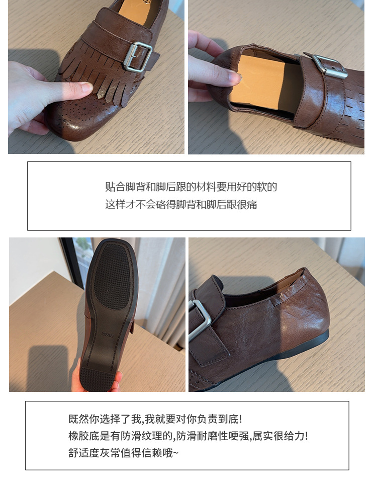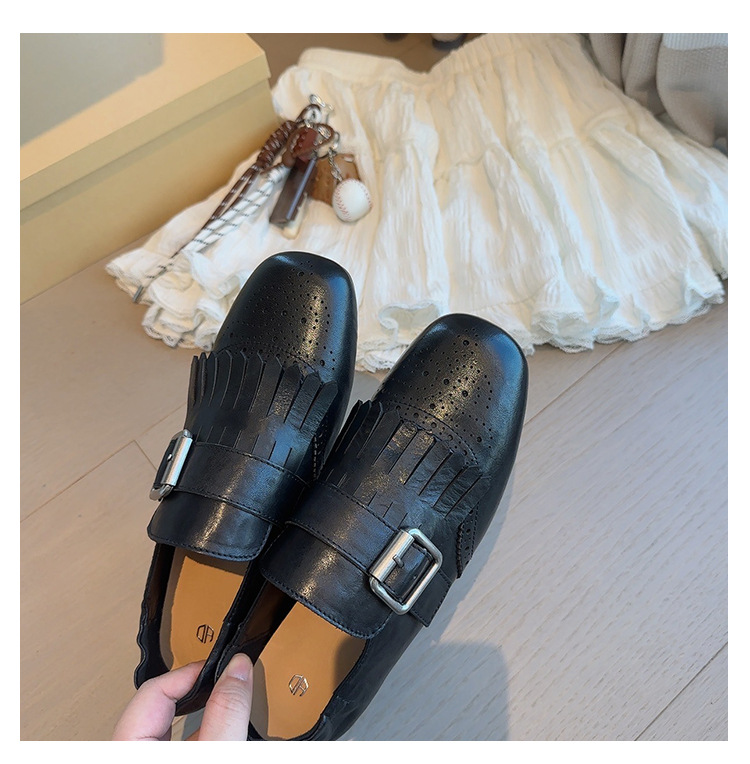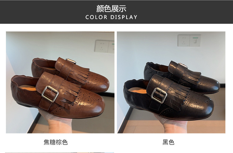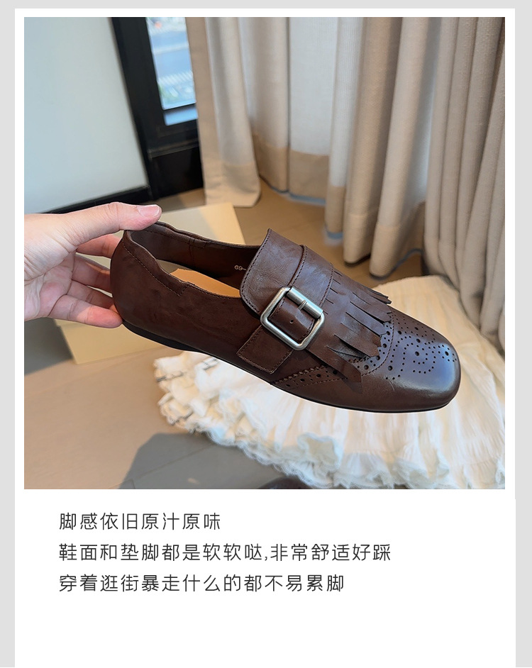 Британский стиль~Красные ретро туфли с кисточками и пряжкой для женщин, новые балетки 2025 года, брошированные лоферы