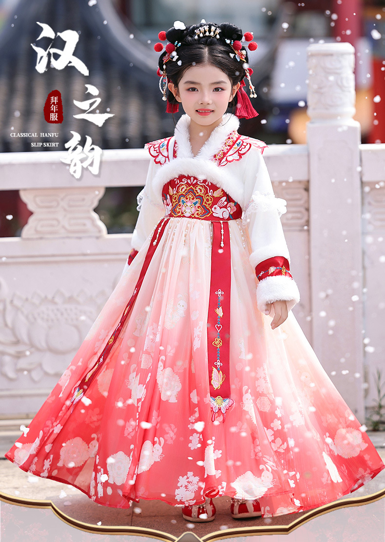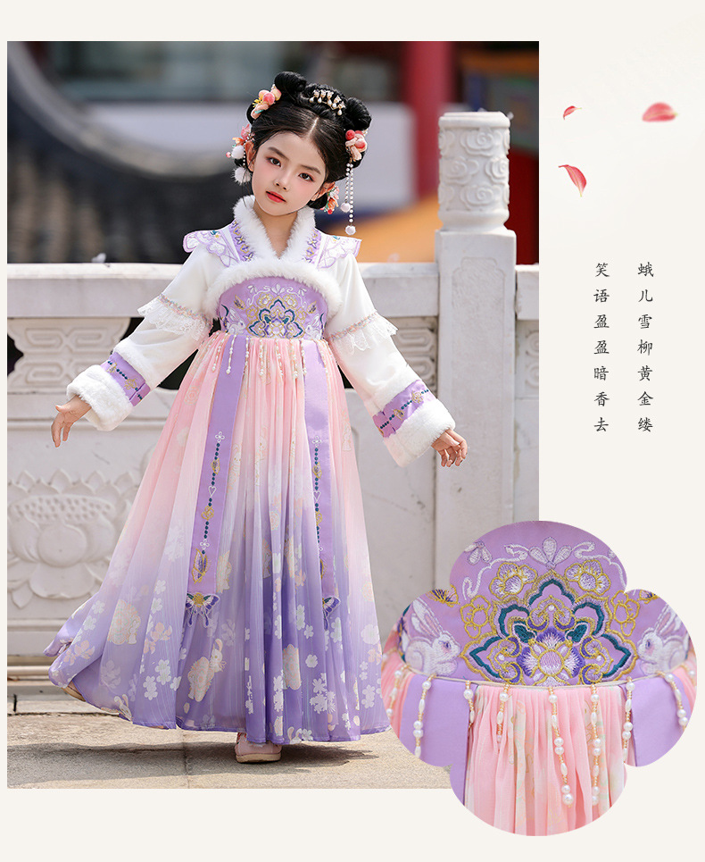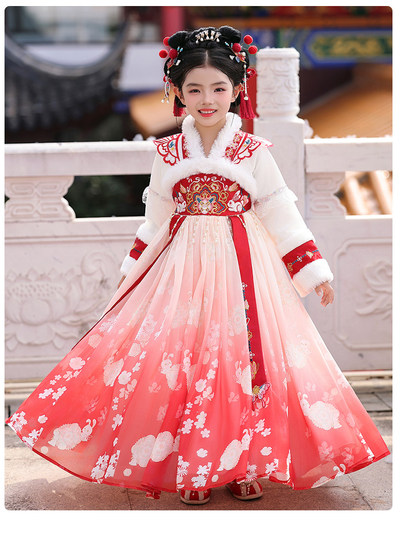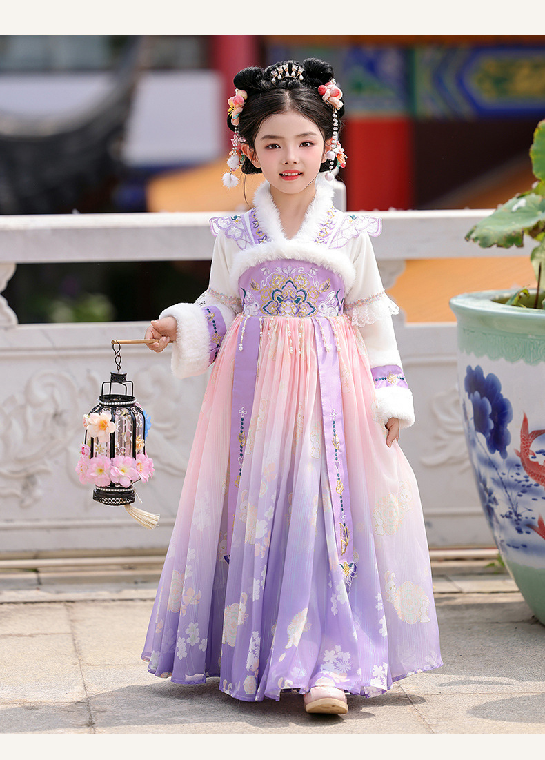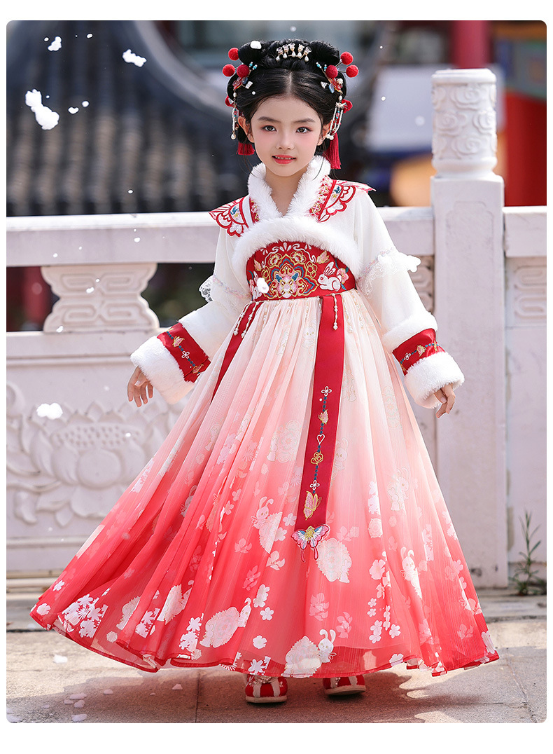 Платье для девочек в стиле Ханьфу с флисовой подкладкой, зимнее, теплое, китайский стиль, костюм Тан, для маленьких девочек, древний костюм