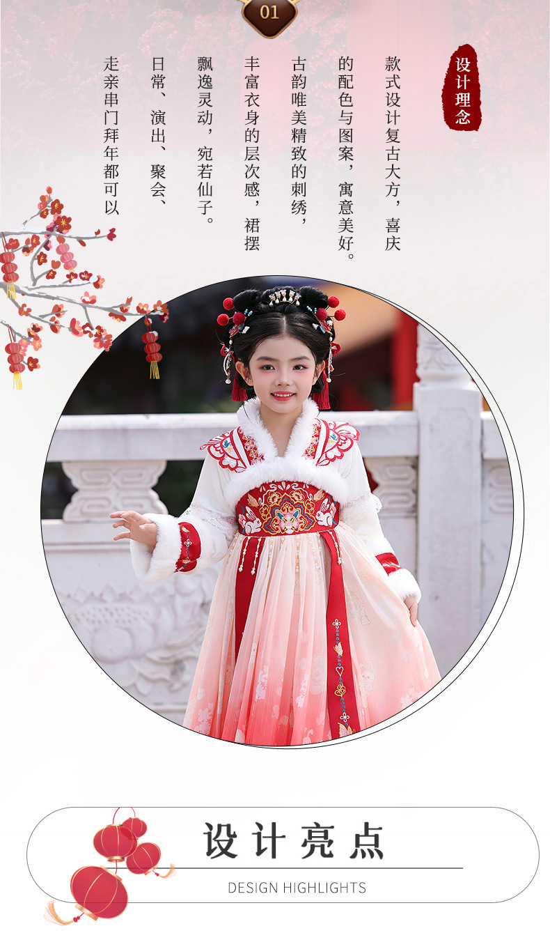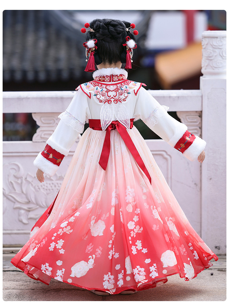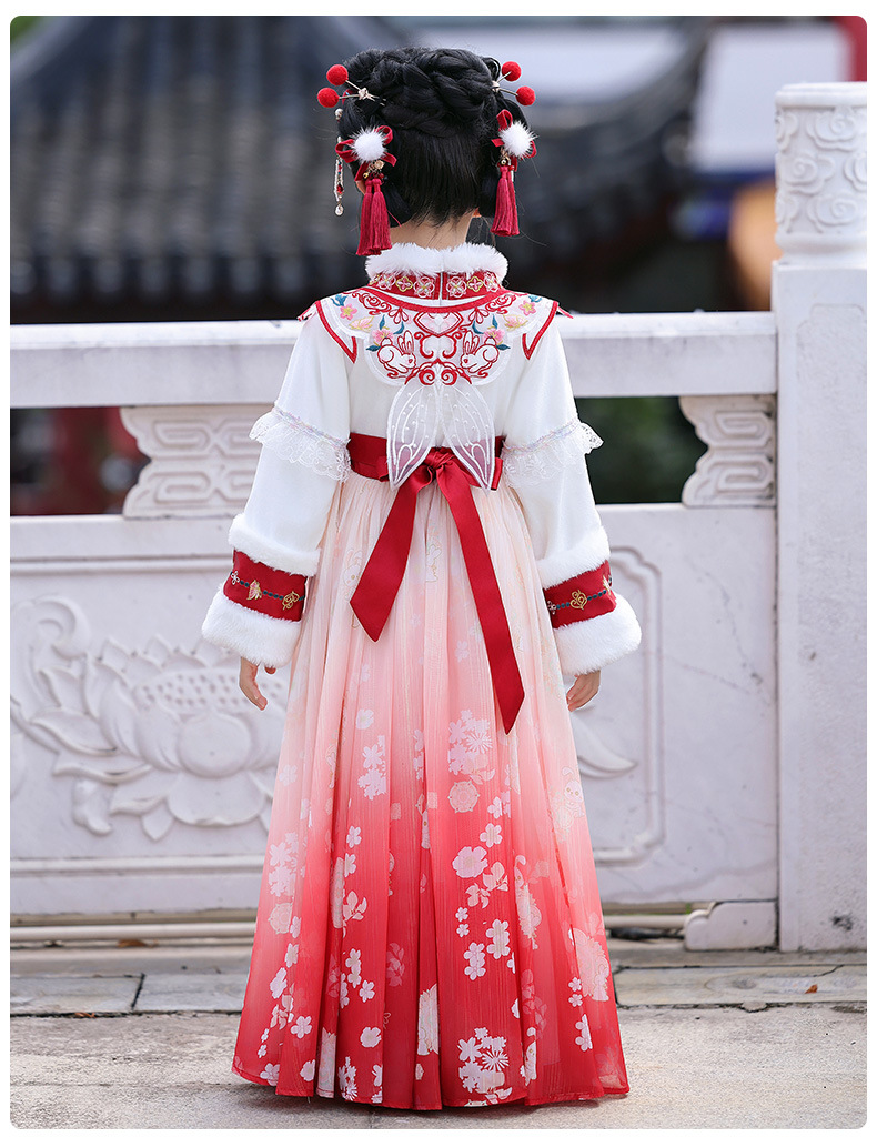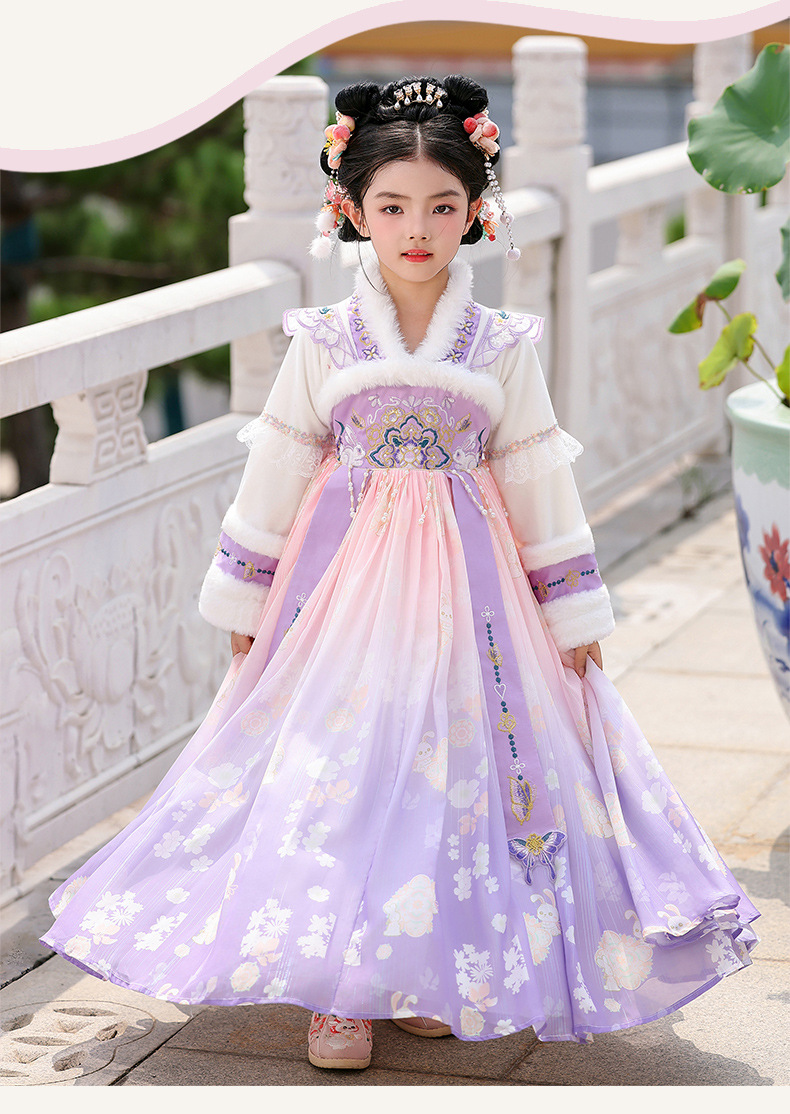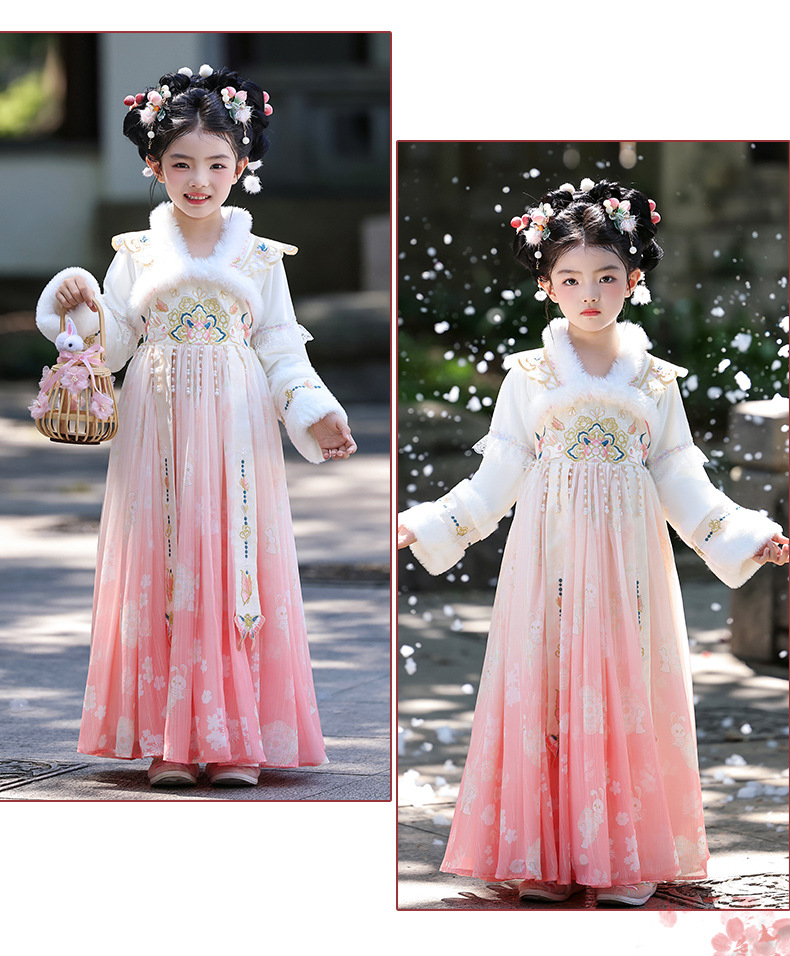 Платье для девочек в стиле Ханьфу с флисовой подкладкой, зимнее, теплое, китайский стиль, костюм Тан, для маленьких девочек, древний костюм