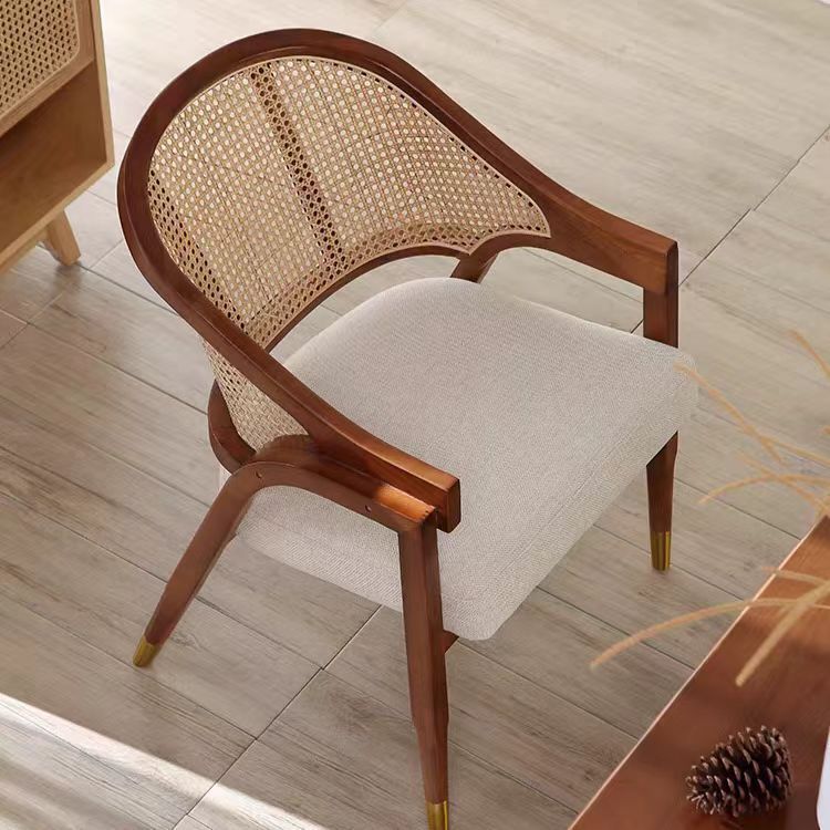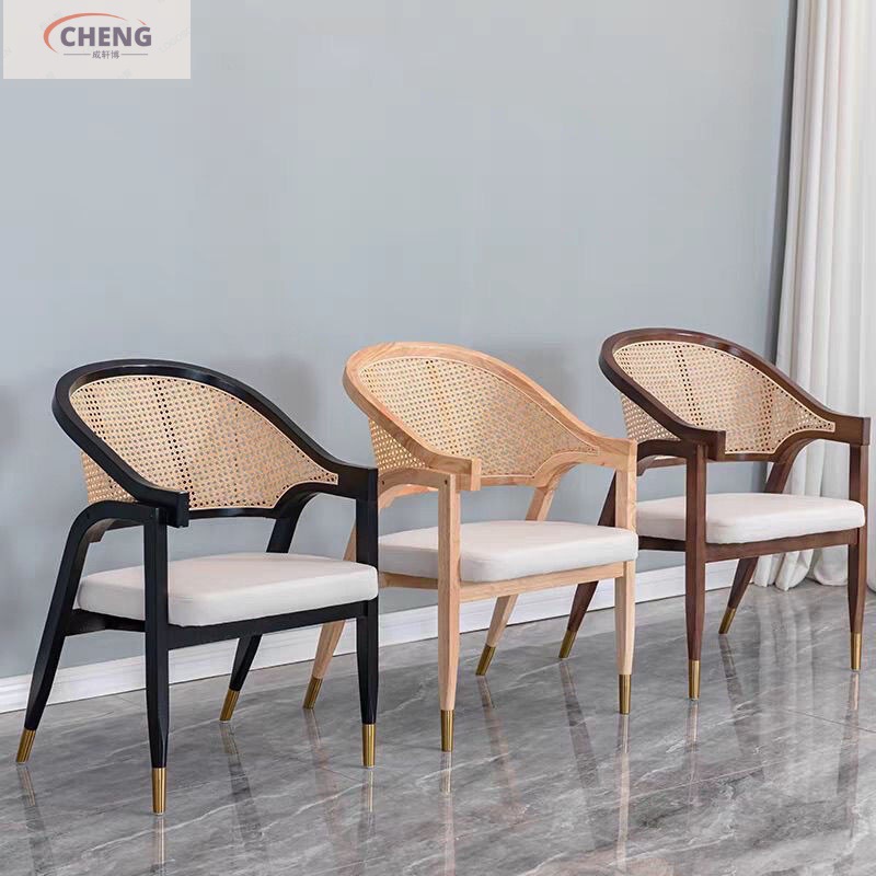 Скандинавский ретро стул из массива дерева для обедов, мягкий стул для кафе B&B, дизайнерский стул с подлокотниками, ротанговый стул