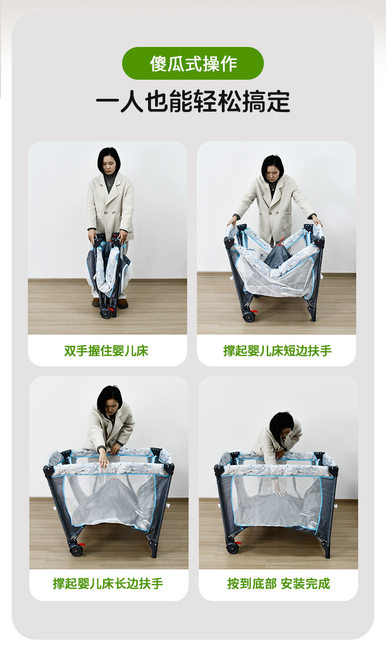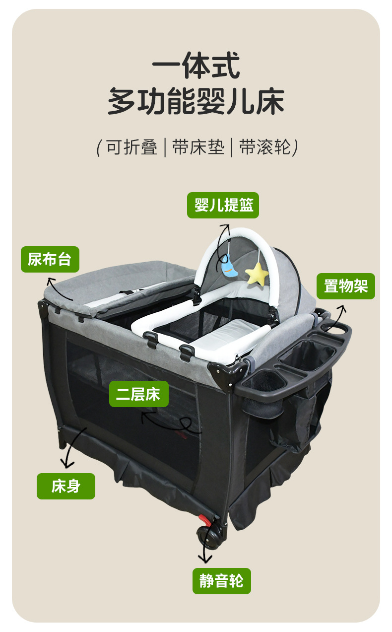 功能:可折叠,可移动,可拆卸,婴儿床,游戏围栏,婴儿提篮