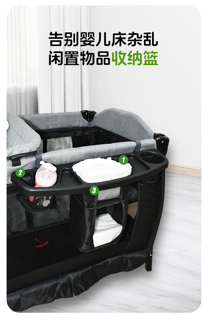 手提袋、拉链二层(挂钩二层大床)、可折叠床垫、置物架、换尿布台、婴儿提篮