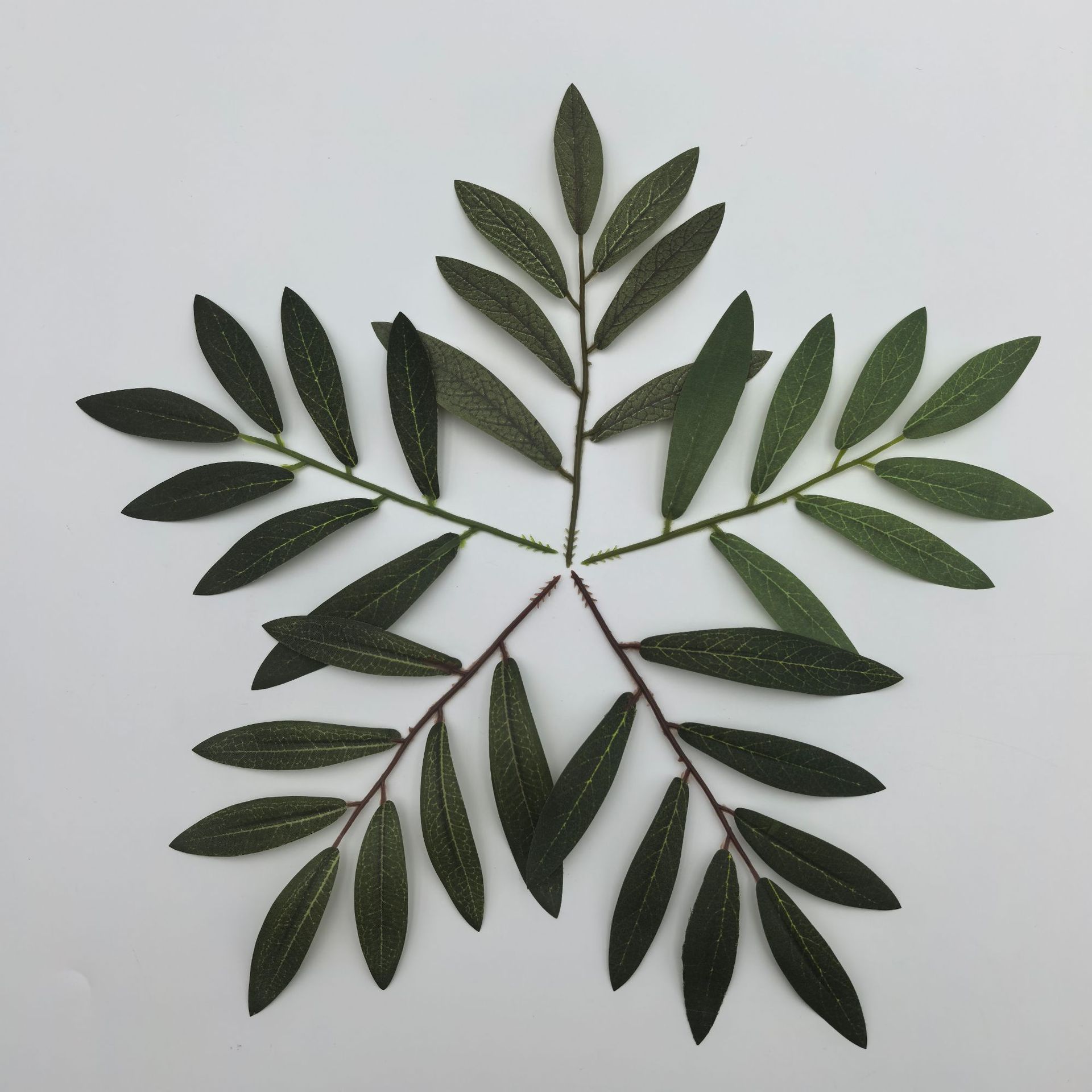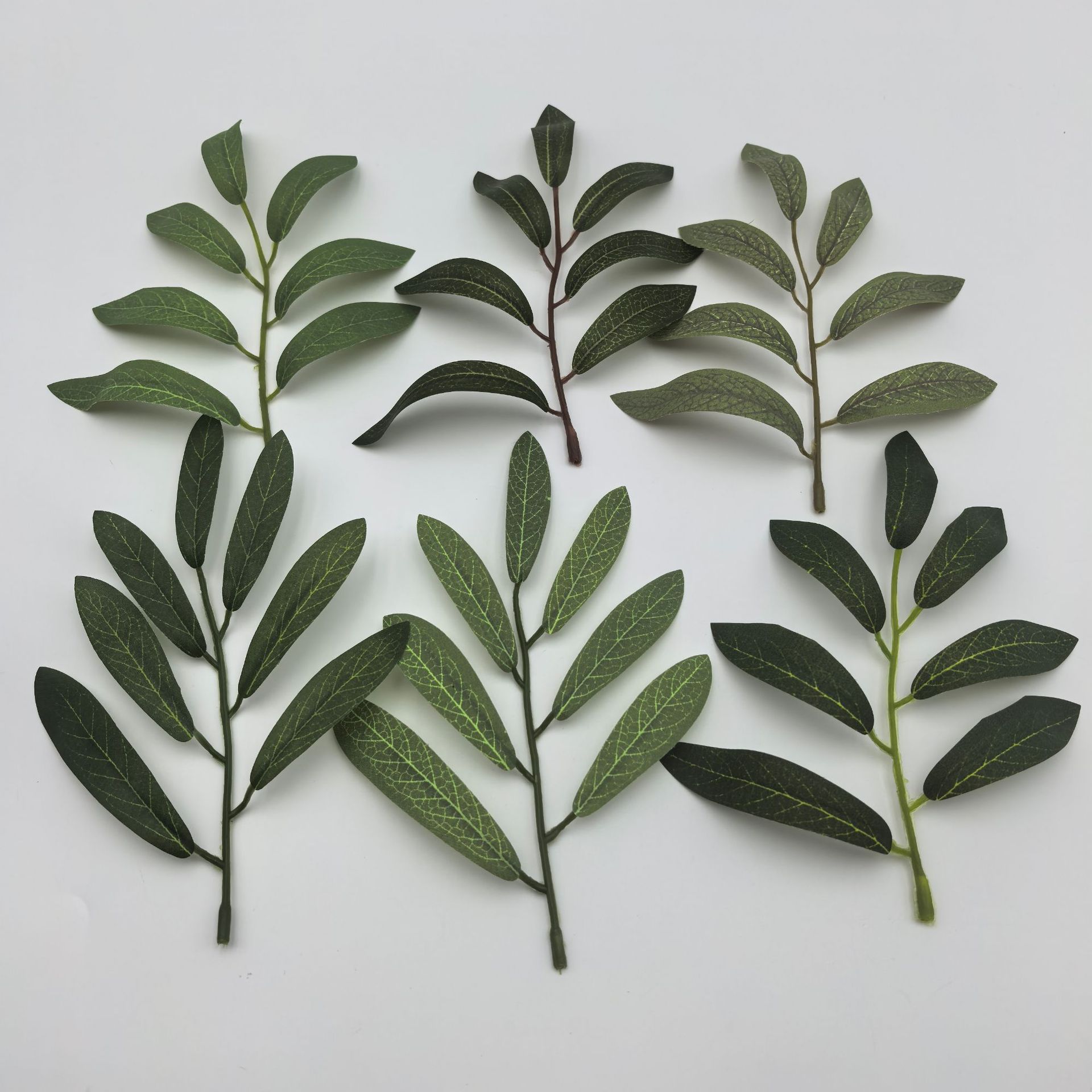 Готовые оптовые искусственные листья от производителя, семираздельные листья оливы, семираздельная стрела с отверстиями, экранные печатные ветки листьев, декоративные аксессуары