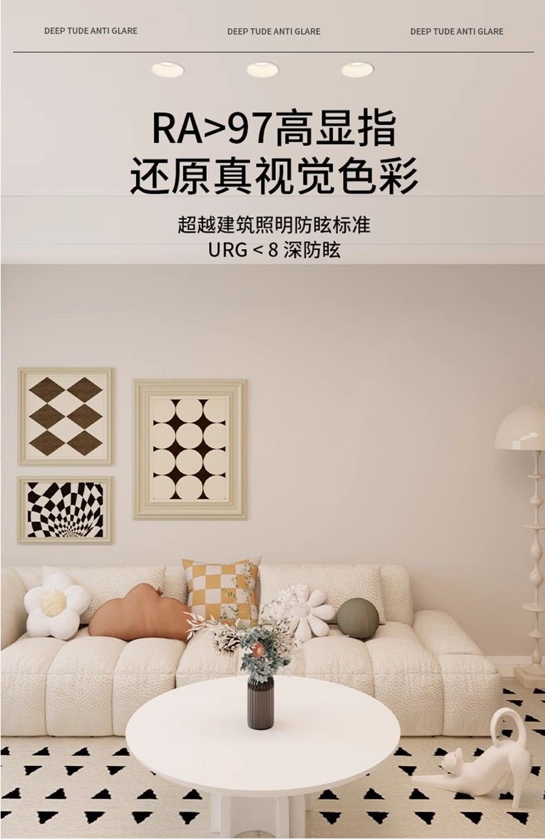 Светодиодный светильник, встроенный, полного спектра, антибликовый, для гостиной, без основного света