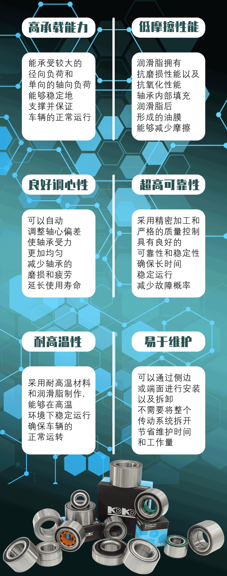聊城市凯迪汽车轴承有限公司是一家集研发、生产、销售于一体的汽车轴承企业。 公司产品以轮毂轴承、轮毂单元、圆锥滚子轴承为主,同时生产销售汽车轴承修理包、涨紧轮轴承、离合器轴承及各类非标轴承。