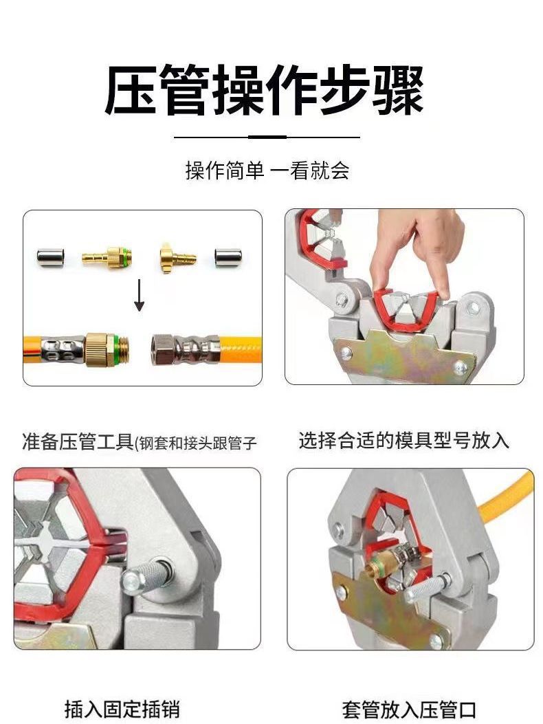 购前需知:这几款压管机仅限压打药管专用,不可以压洗车管、油管、钢丝管、空调管、液压管,清洗机管、天然气管。