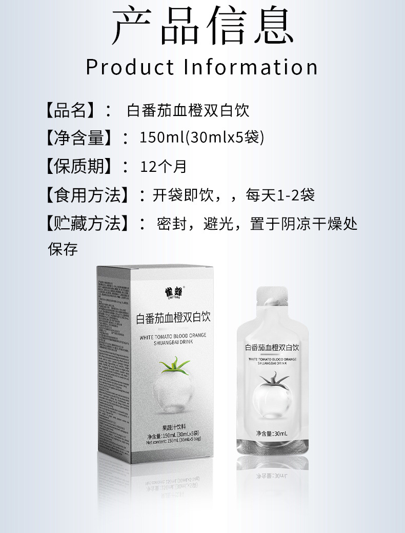 实力工厂白番茄血橙双白饮水晶白番茄白白饮胶原蛋白肽液态饮批发