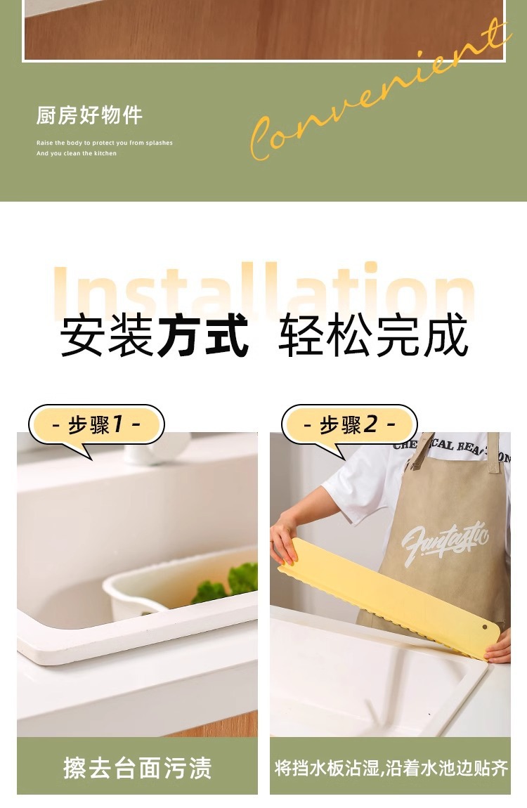 Защита от брызг для раковины, противоразбрызгивающая перегородка, интегрированная силиконовая водоотводящая лента