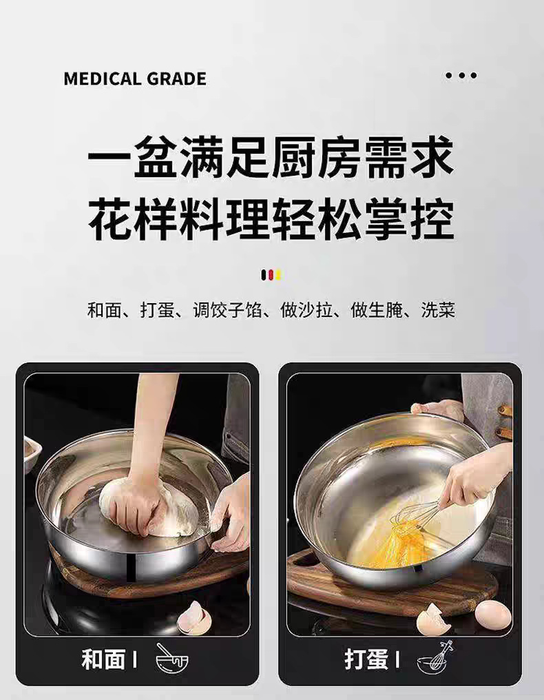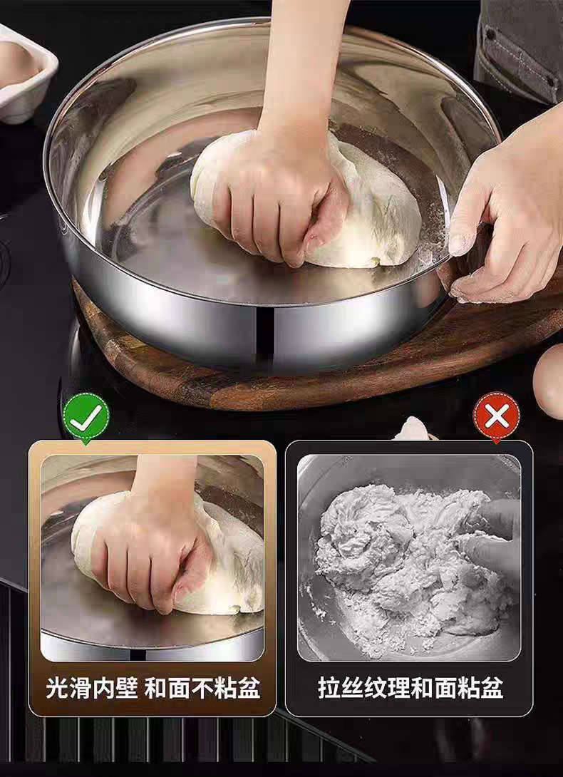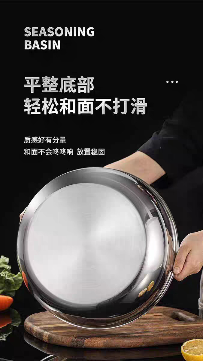 Чаша из нержавеющей стали с зеркальной отделкой, утолщенная для домашнего использования, подходит для взбивания яиц, смешивания овощей, готовки, мытья и выпечки