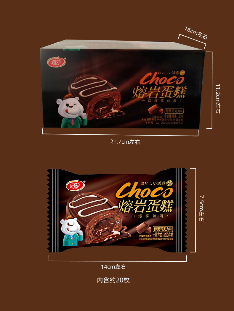 Лавовый торт Qifen шоколадный вкус, взрывной сэндвич-торт, хлеб 20 штук/упаковка, десерт, закуски для послеобеденного чая