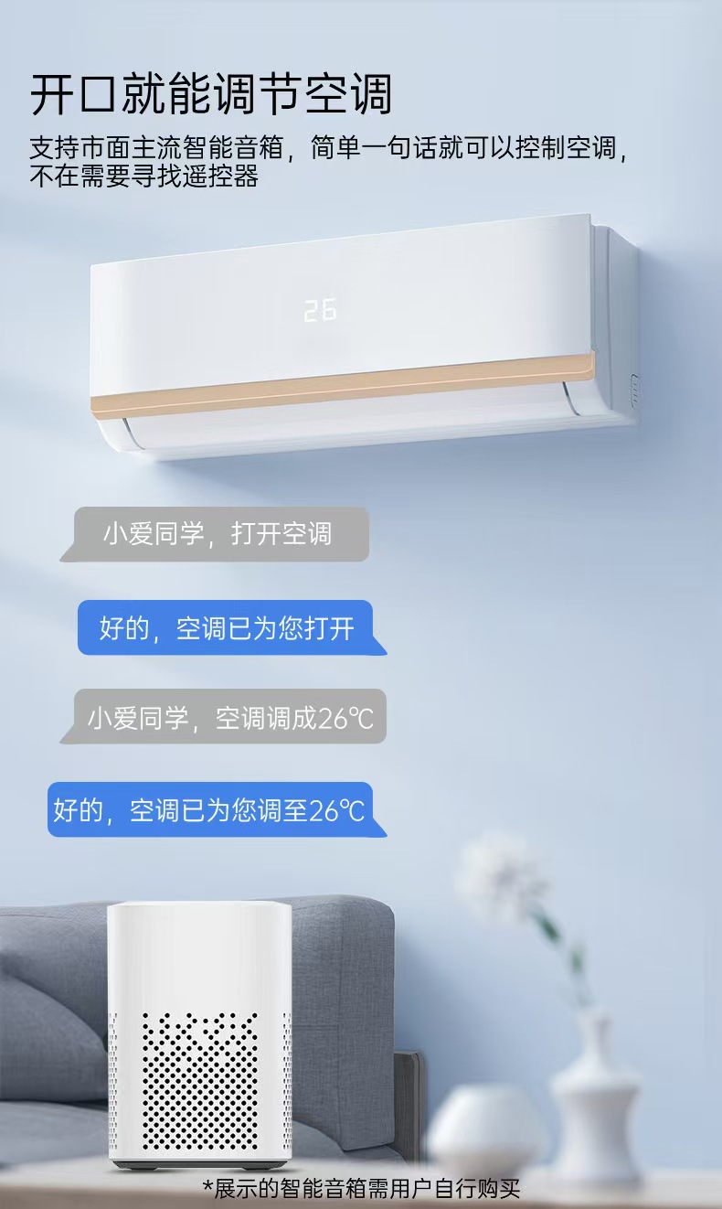 兼容涂鸦智能生态的语音助手,动动嘴就能调节空调温度、开关,不用找遥控器,老人小孩也能轻松使用。