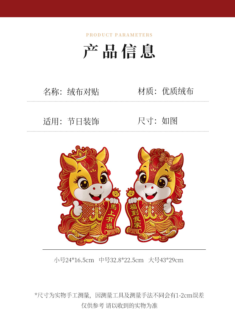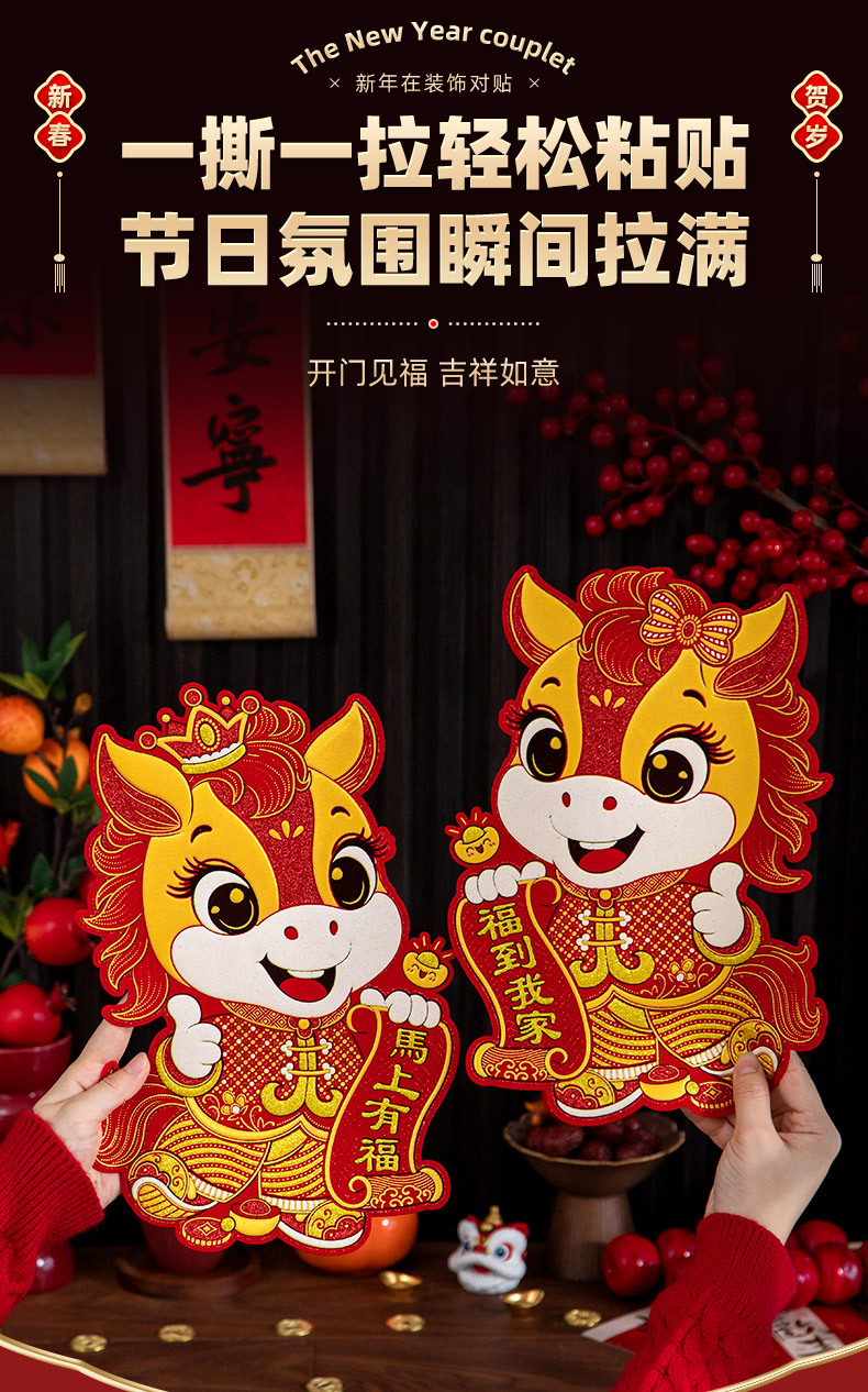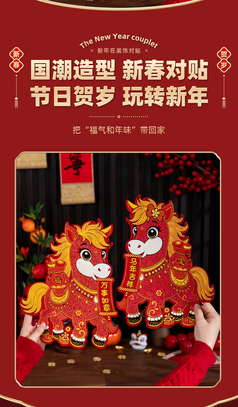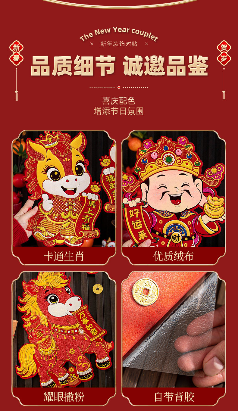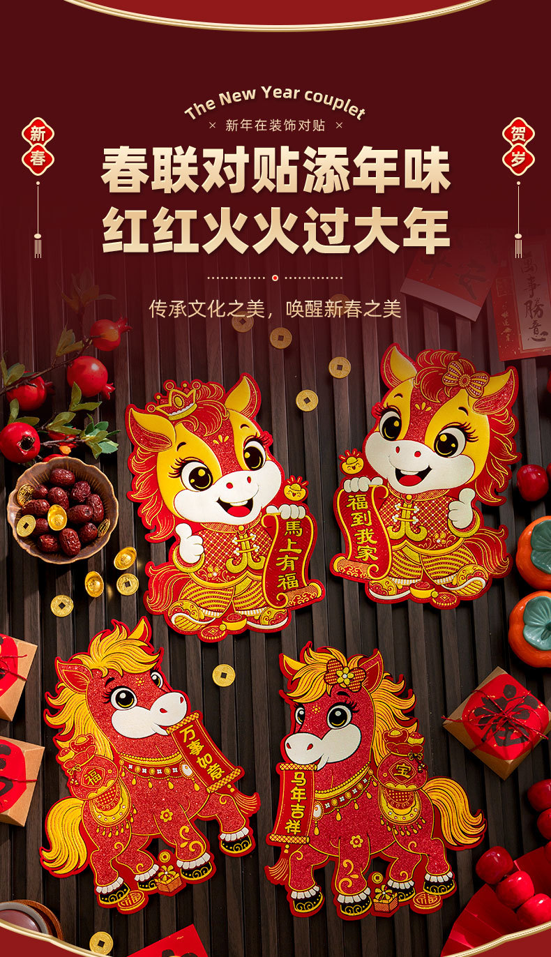 Наклейки на двери год лошади бархатныеCouplets 2026 весенний фестиваль Новый год зодиакальные наклейки на двери благословения украшения весеннего фестиваля