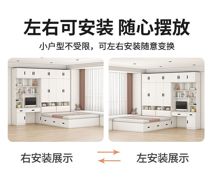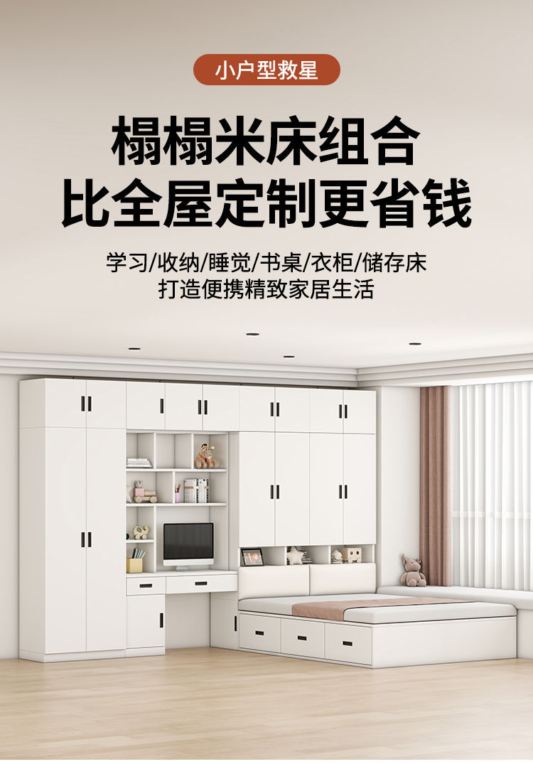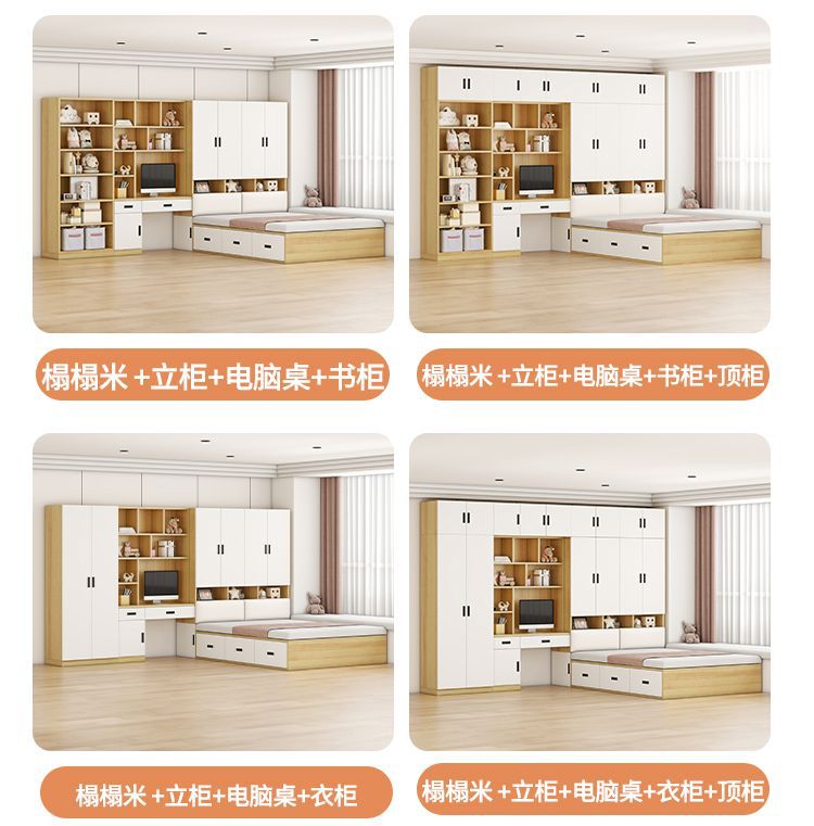 Татами кровать для маленькой квартиры с встроенным шкафом, рабочим столом, детская кровать, многофункциональная комбинация, кровать для хранения, спальня, гардеробная