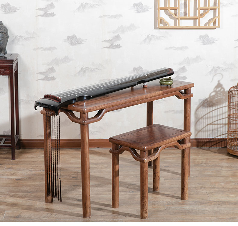 Классический стол и стул для гуцина в стиле Мин из ясени, покрытый сырым лаком, стол из цельного дерева с соединением в шип и паз, гуцин из Янчжоу