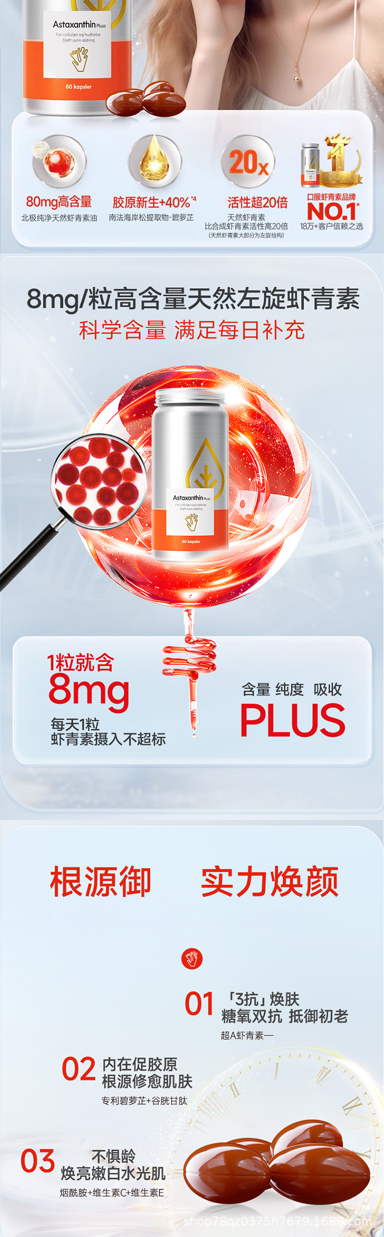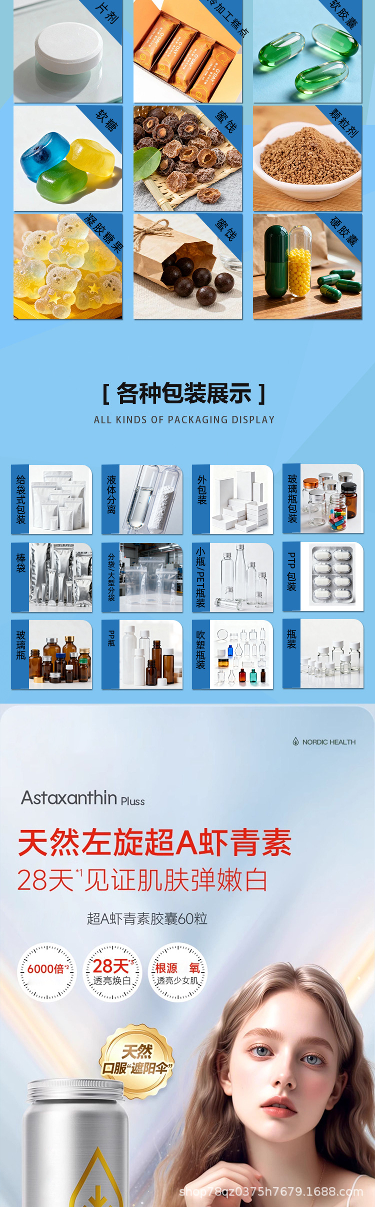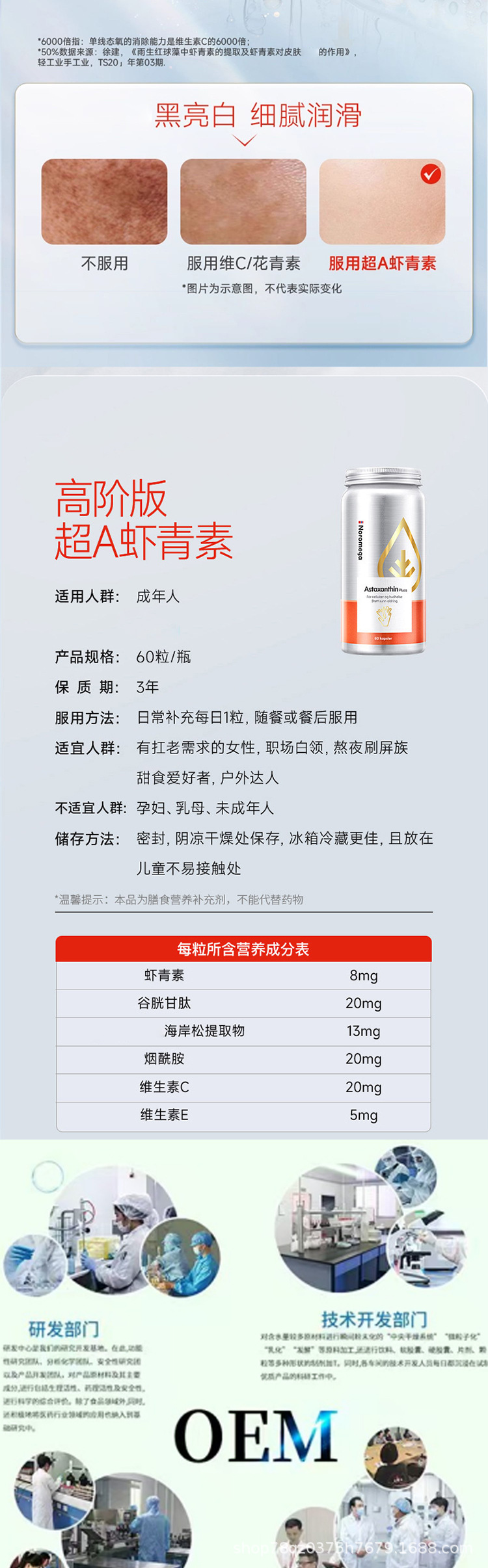Капсулы астаксантин высокой чистоты Cross-Border Tk Amazon с экстрактом Haematococcus Pluvialis для двойного антивозрастного и осветляющего ухода за глазами