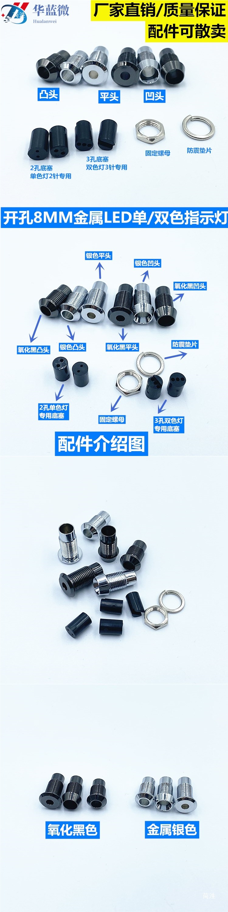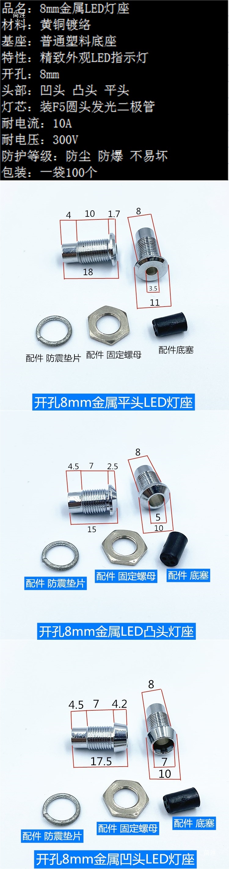 Открытое отверстие 8мм металлический светодиодный индикатор аксессуары для лампы держатель одинарного и двойного цвета 2 отверстия 3 отверстия нижний штекер вогнутый и выпуклый плоский головной светильник