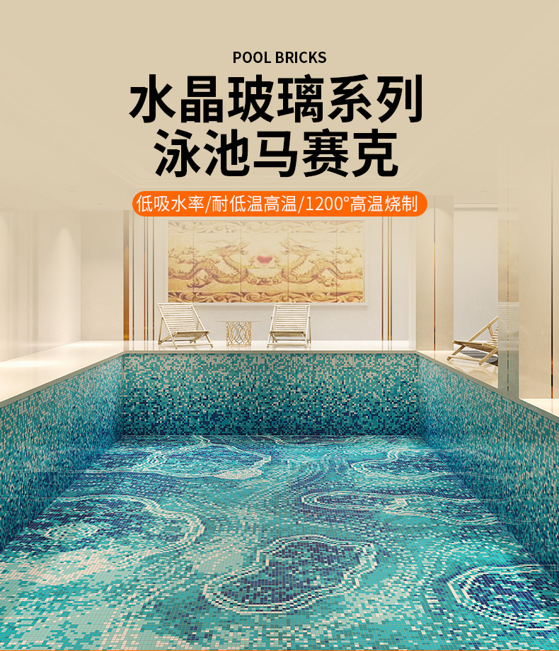 Мозаичные плитки серии Кристаллическое стекло Разные спецификации Плавательный бассейн Отель Вилла Ландшафтный бассейн Рыбный пруд Водонепроницаемые