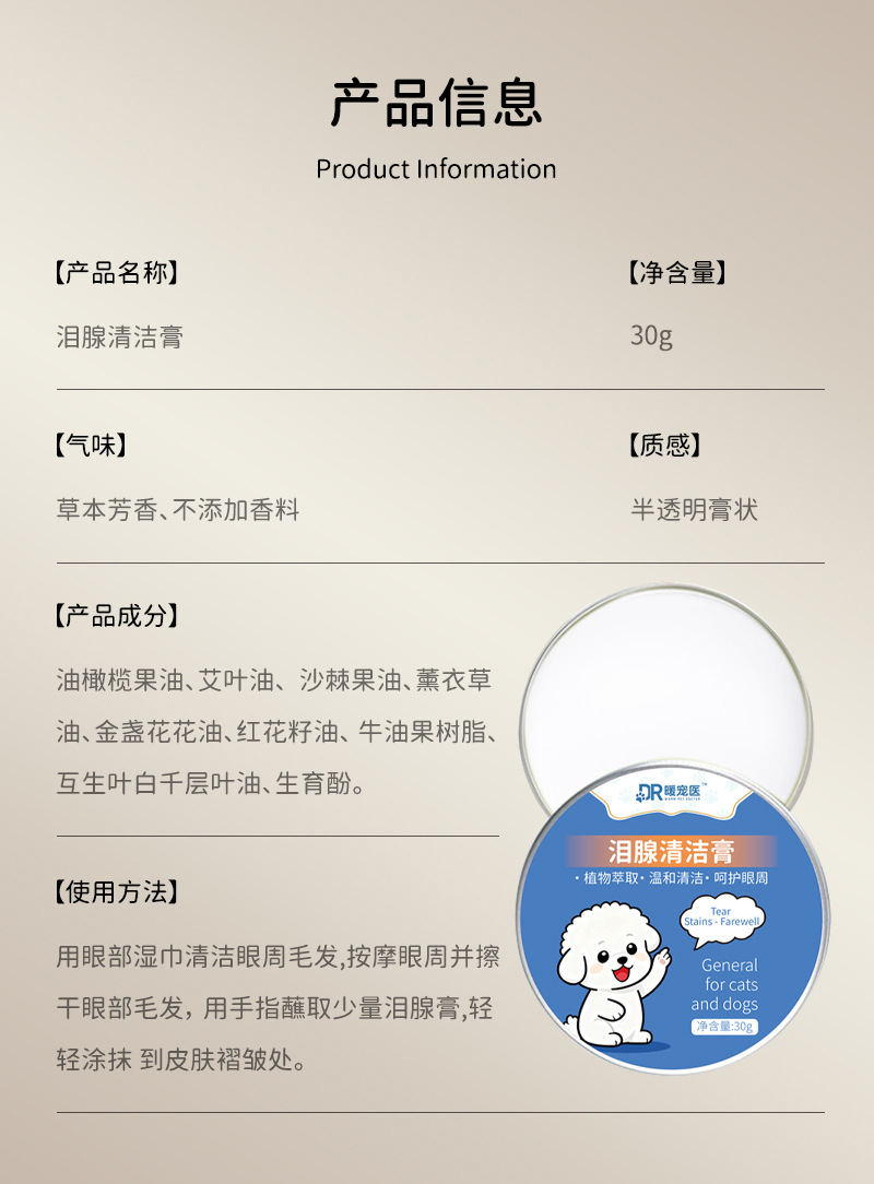 Крем для удаления слезных пятен у собак и кошек, для бишонов и померанских тедди, 30 г, оптовая продажа от производителя