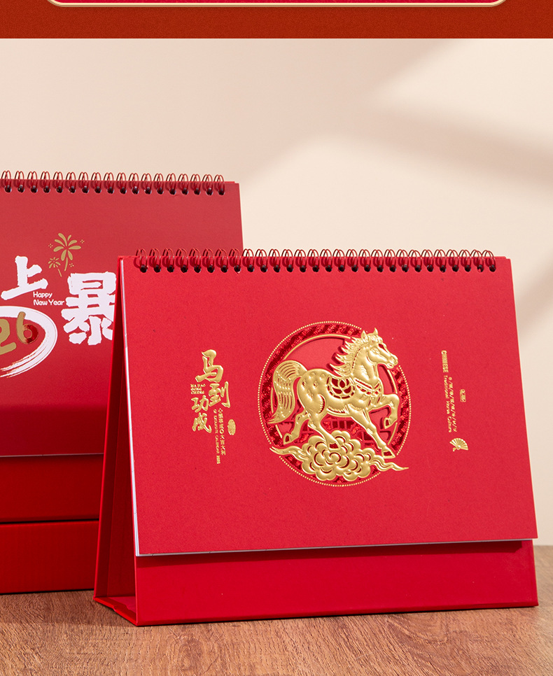 Индивидуальный настольный календарь на год лошади 2026 года, индивидуальный настенный календарь, рекламный настольный календарь, настраиваемый с печатным логотипом