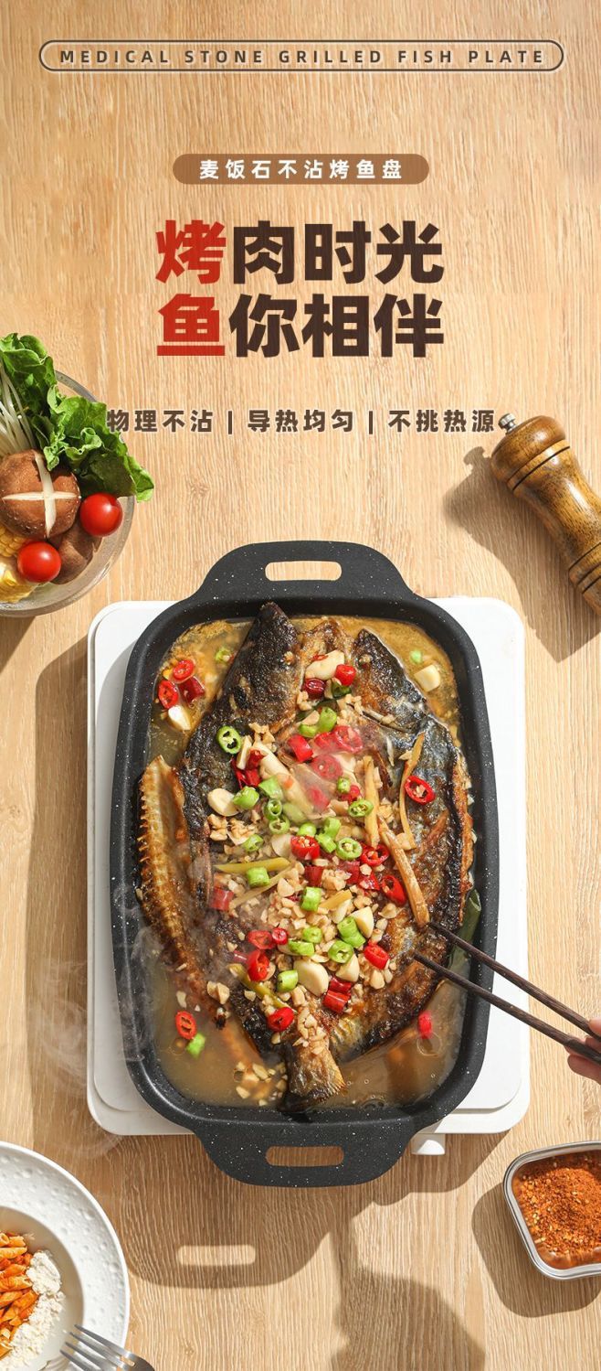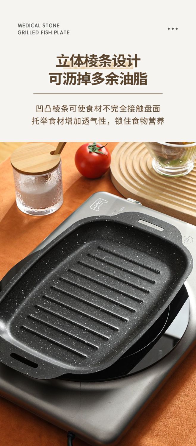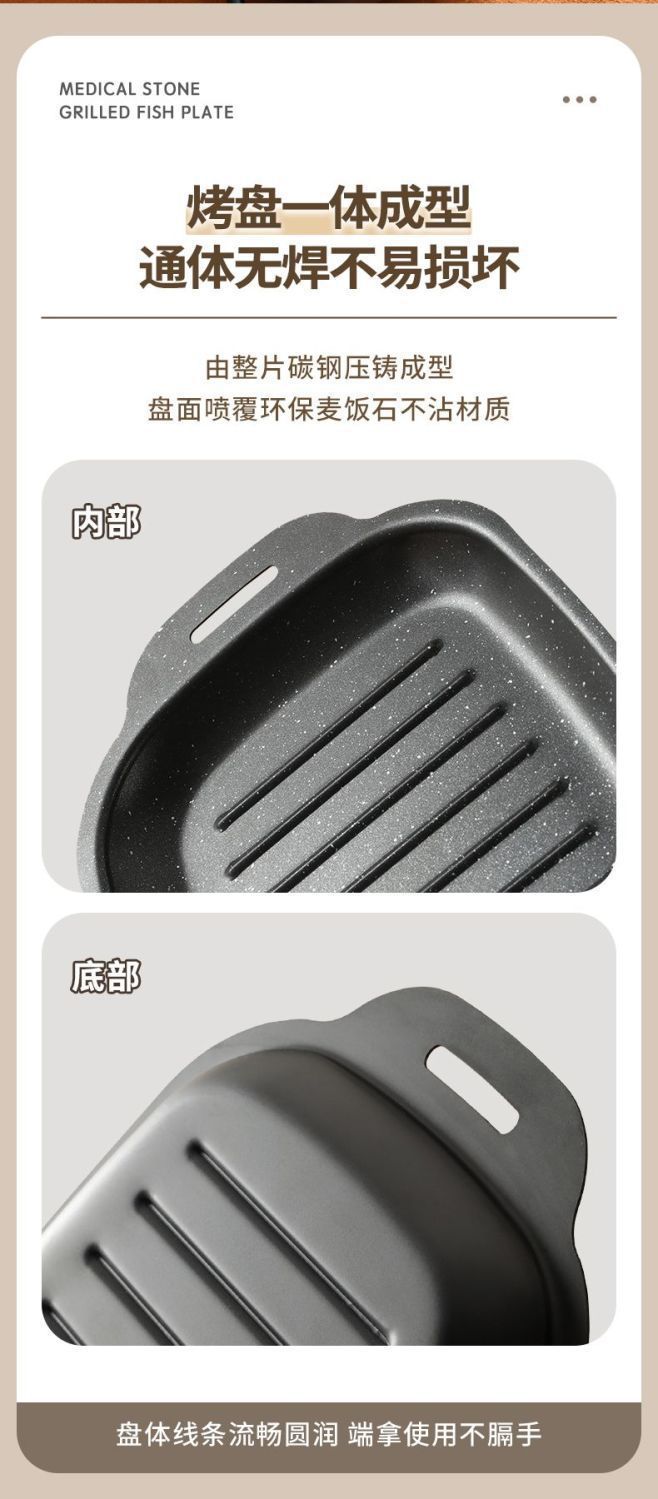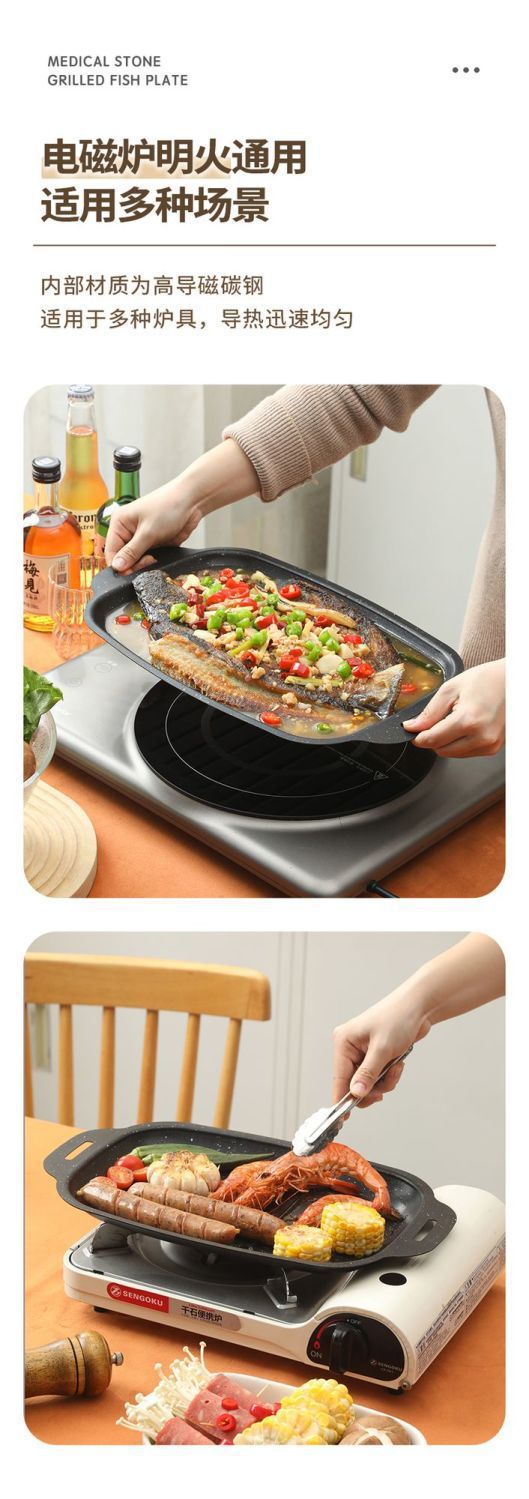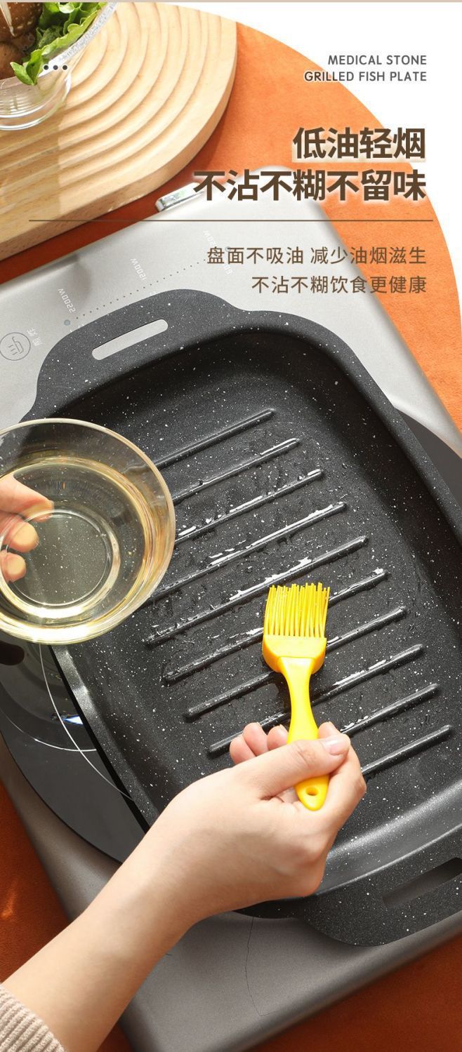 Сковорода для рыбы на гриле, мраморная, для домашней индукционной плиты, газовой плиты, прямоугольная, специальная кассета для барбекю, сковорода для жарки