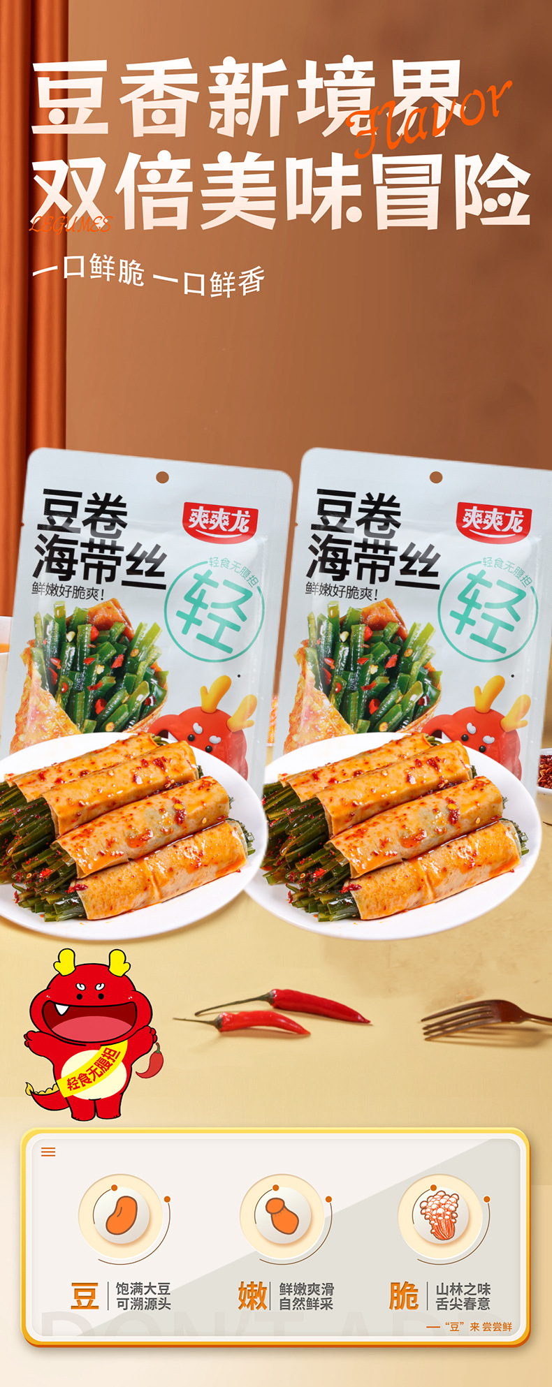 ![]() | Shuangshuang long bean roll kelp shreds 120g/pack | ¥3.8 / ≈ 46 ₽ | 9995 | 5948802004325 | |