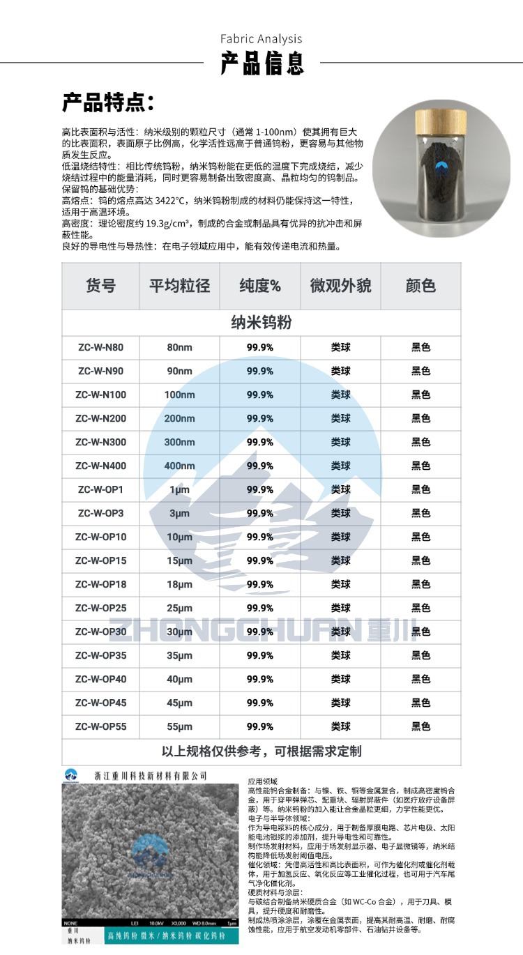 Нано-порошок вольфрама, высокочистый порошок для научных исследований