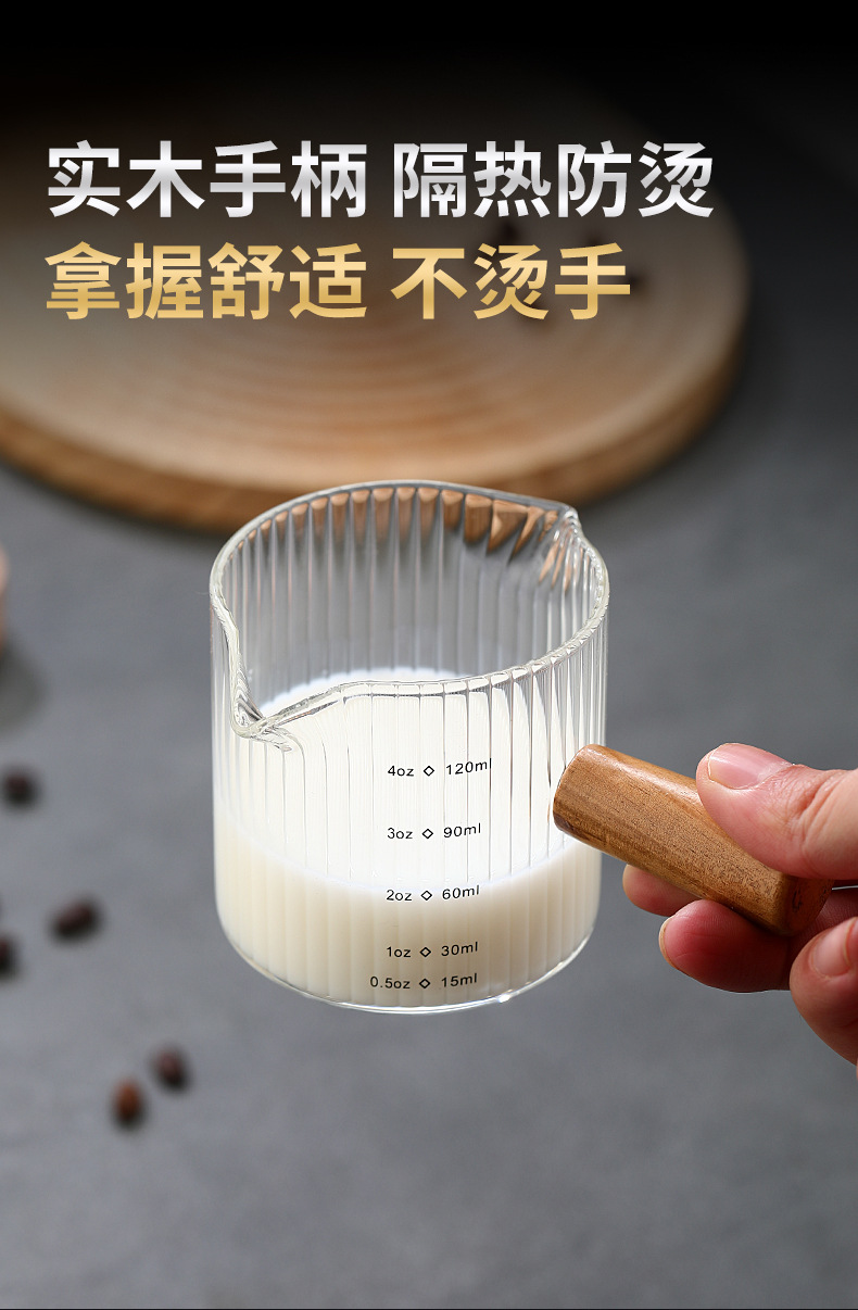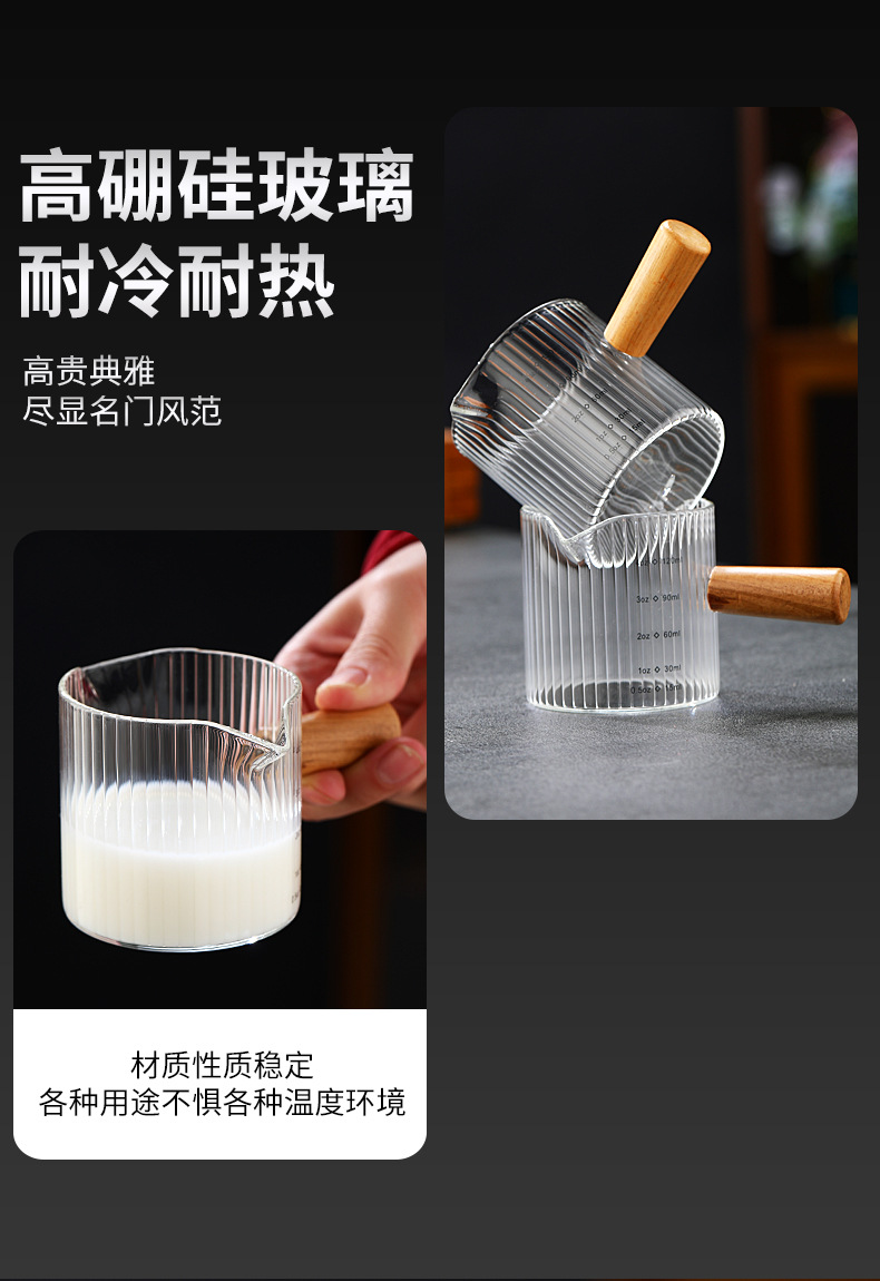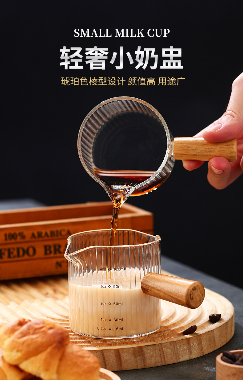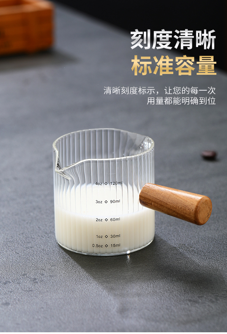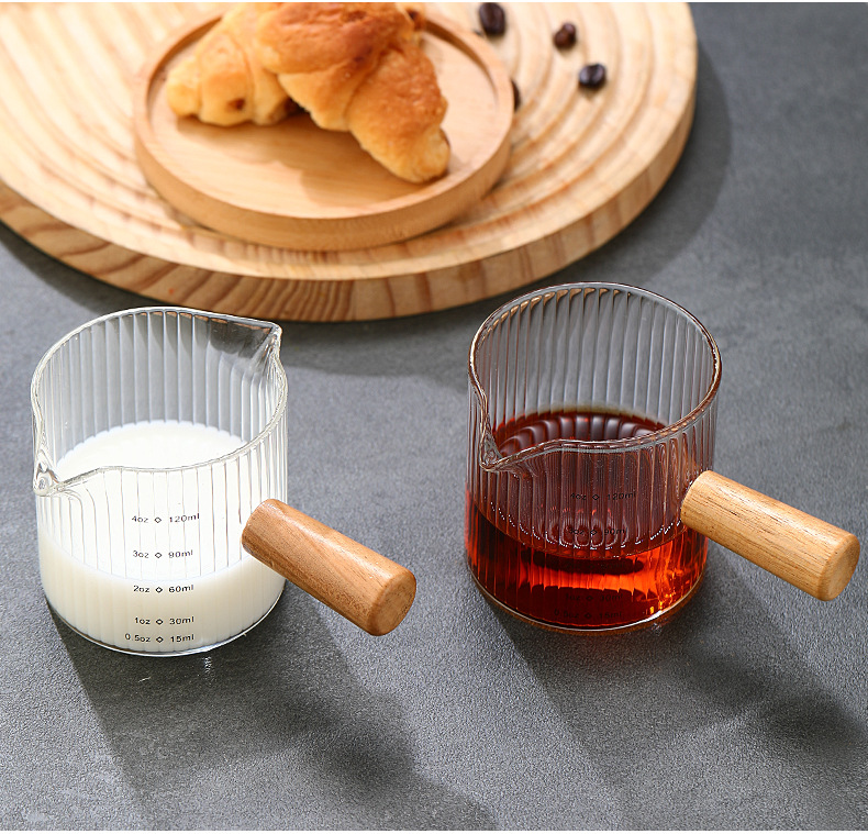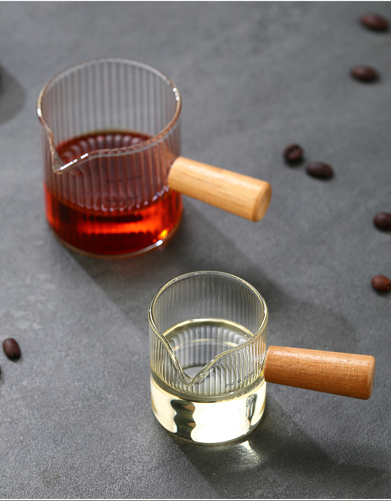 Стеклянная кофейная мерная чаша в итальянском стиле с вертикальными полосами, маленькая молочная кружка, мини-чайник для молока, деревянная ручка, двойной носик, маленький чайник для молока и кофе